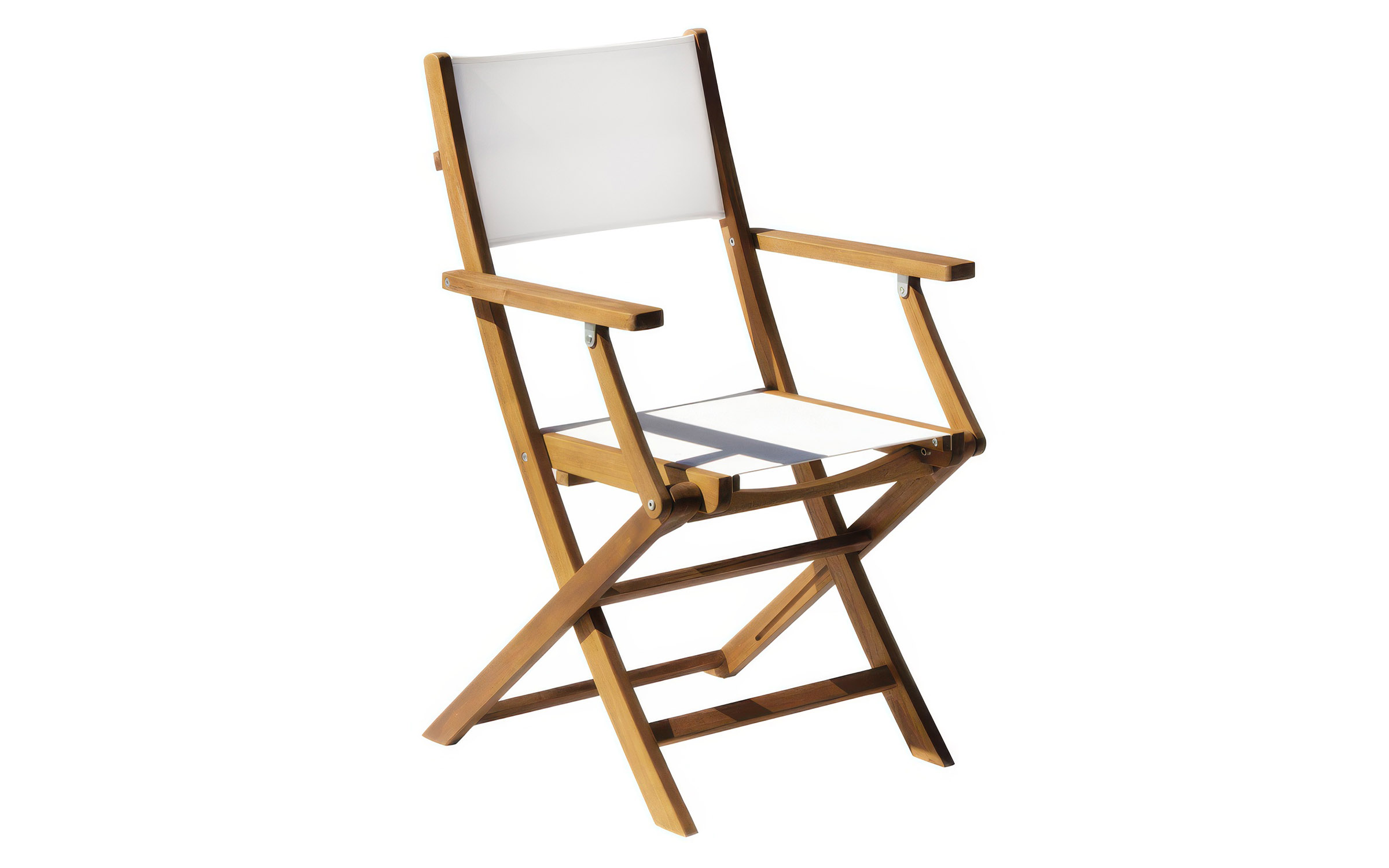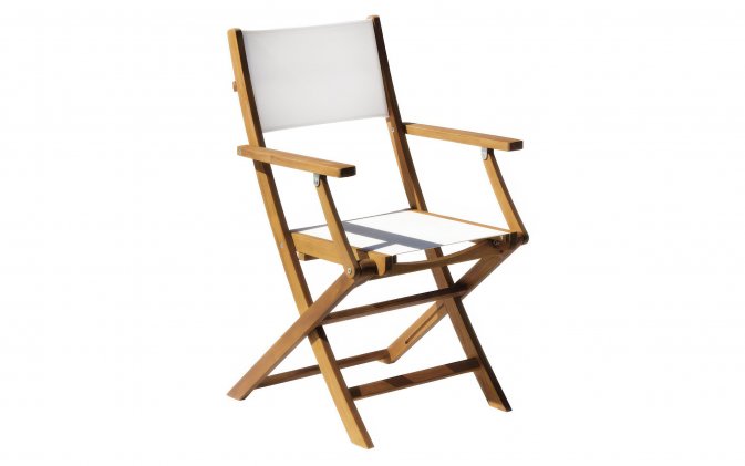 VENTURINA Krzesło ogrodowe składane z drewna akacjowego i tekstyliny z podłokietnikami