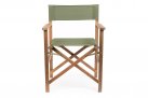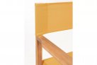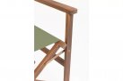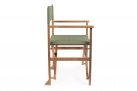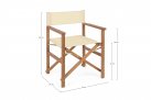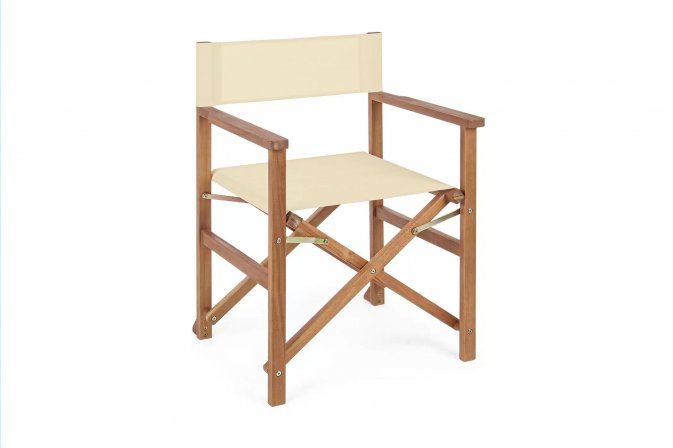 Składany fotel reżyserski z drewna akacji z oparciem i siedziskiem z materiału poliestrowgo. Producent zaleca stosowanie na zadaszonych tarasach lub do wnętrz.