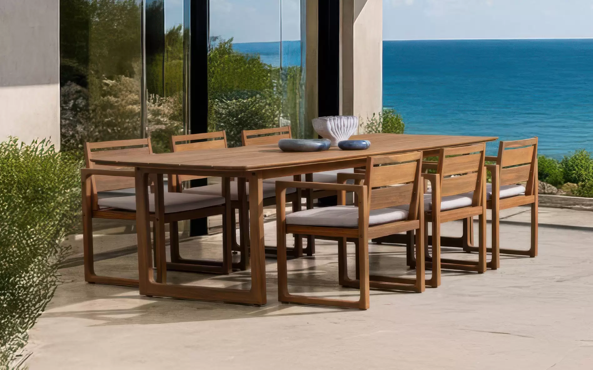 ADRIAN to kompletny zestaw jadalniany, który wprowadza ciepło naturalnych materiałów do nowoczesnych przestrzeni outdoorowych. Fundamentem konstrukcji jest lite drewno akacji z certyfikatem FSC 100%, poddane procesowi olejowania dla uzyskania głębokiego efektu teaku. Dzięki wysokiej gęstości surowca, meble są naturalnie przystosowane do intensywnego użytkowania na zewnątrz, zachowując swoją stabilność i estetyczny wygląd mimo upływu lat i zmiennych warunków pogodowych.