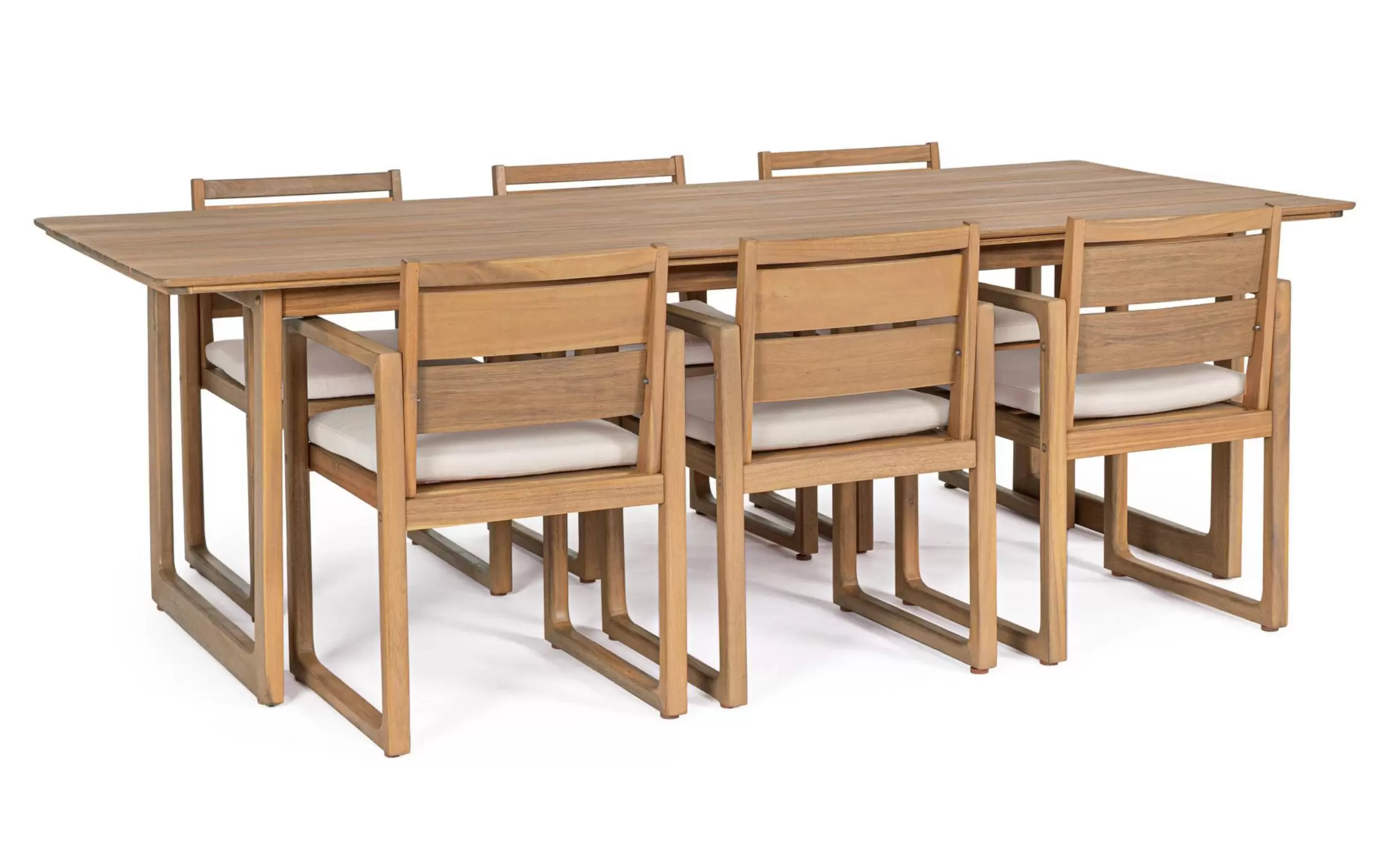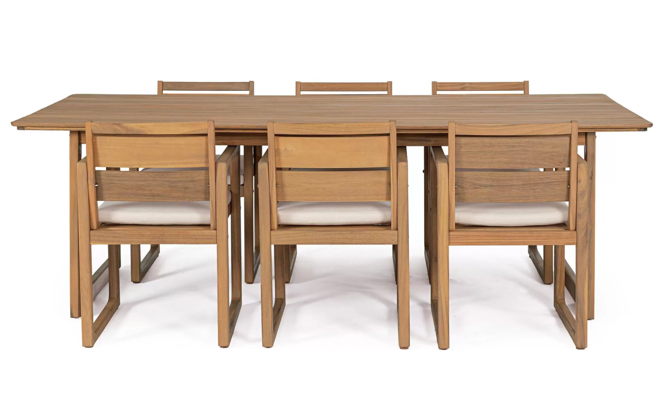 Drewno akacji FSC 100% – to surowiec o naturalnie wysokiej gęstości i twardości, co bezpośrednio przekłada się na odporność mebli na uszkodzenia mechaniczne oraz trudne warunki pogodowe. Drewno zostało poddane procesowi olejowania z efektem teaku, co tworzy barierę ochronną przed wilgocią i podkreśla bogate, naturalne usłojenie. Certyfikat FSC 100% daje pewność, że materiał w całości pochodzi z odpowiedzialnie zarządzanych zasobów leśnych.