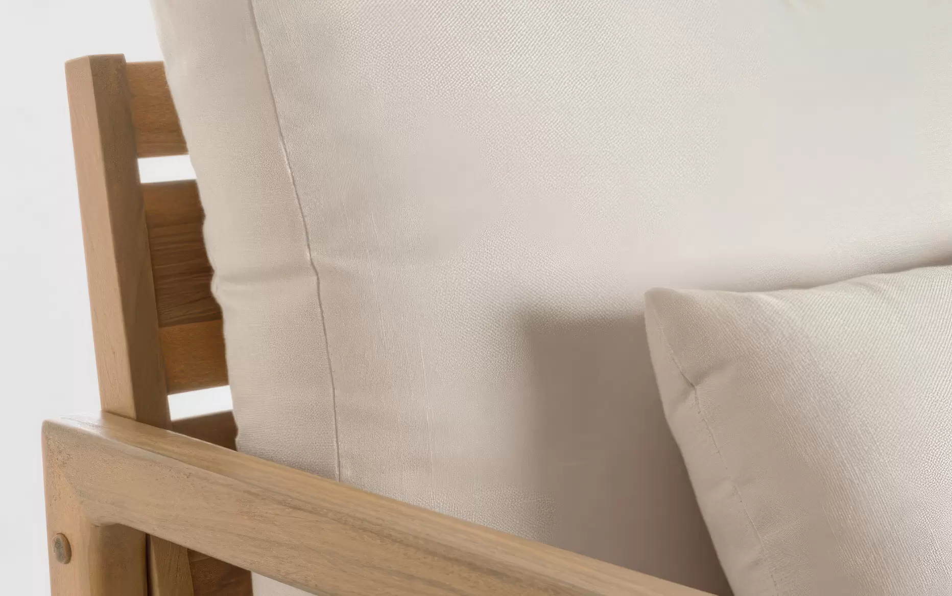 Poduszki wykonano z tkaniny spunpoly – poliestrowej tkaniny outdoorowej o strukturze przypominającej bawełnę. Jest wodoodporna, szybkoschnąca, odporna na promieniowanie UV i pleśń. Pokrowce są zdejmowane, co ułatwia pielęgnację.