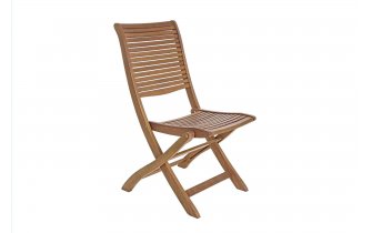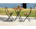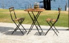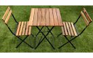 Dwuosobowy komplet do ogródków restauracyjnych ze składanymi krzesłami i stołem 55x55 cm. Siedziska i blat z deseczek akacjowych.