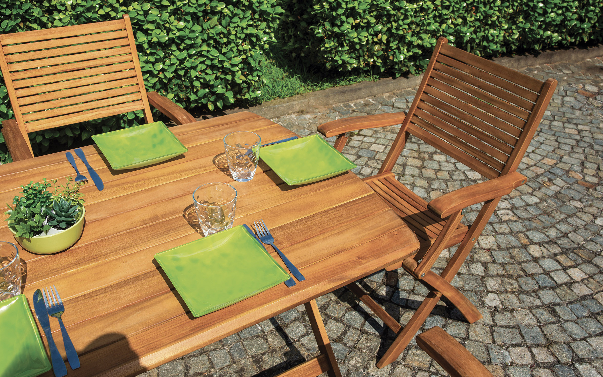 Stół ogrodowy CASTIGLIONE to funkcjonalny, składany model wykonany z naturalnego drewna akacjowego. Prostokątny blat o wymiarach 140×80 cm zapewnia wygodne miejsce dla 6 osób. Dzięki składanej konstrukcji stół idealnie sprawdzi się na tarasie lub w ogrodzie, gdzie liczy się mobilność i oszczędność przestrzeni.