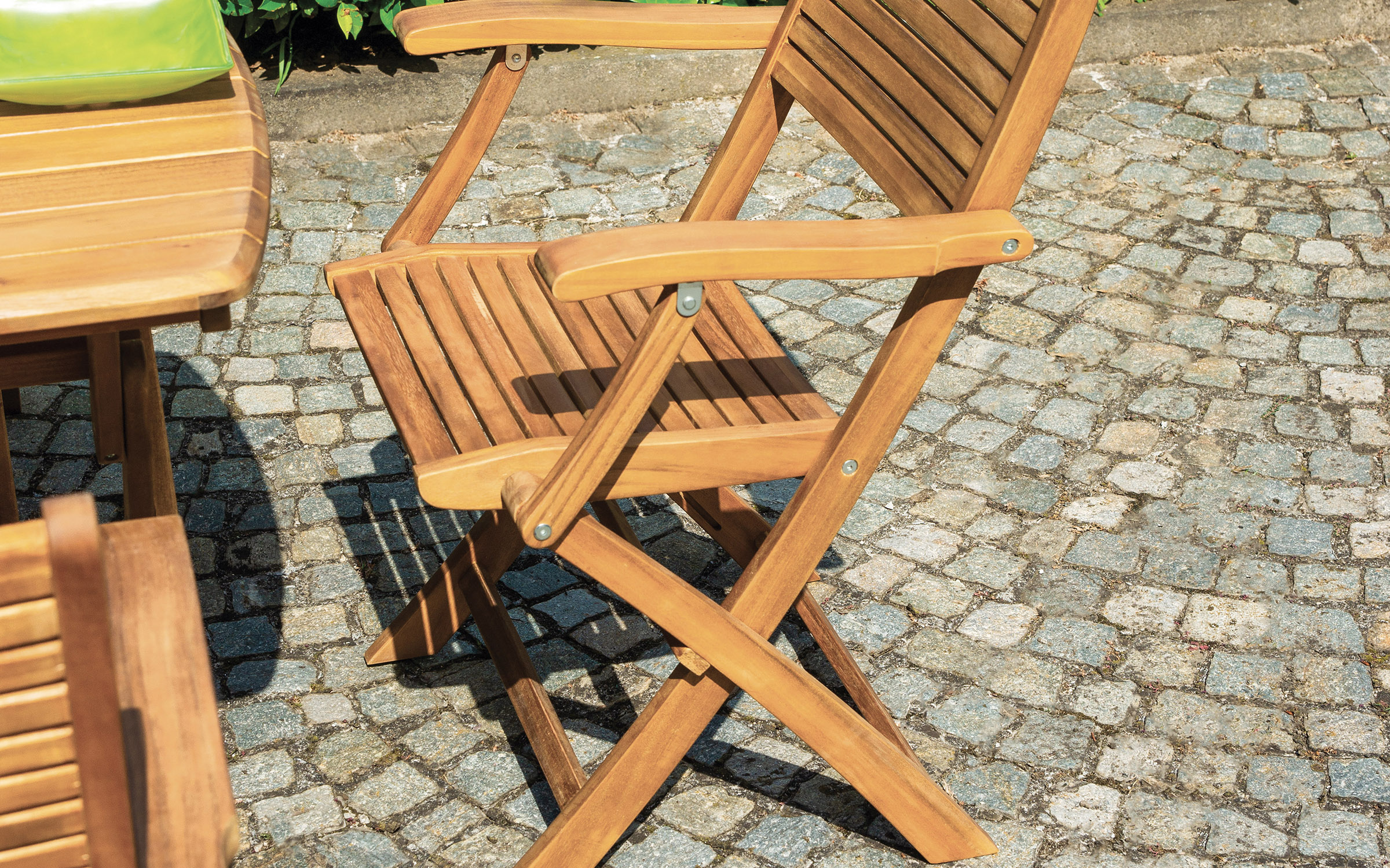 Wykonany z naturalnego drewna akacjowego, odpornego na warunki atmosferyczne, wilgoć i promieniowanie UV. Drewno egzotyczne o wysokiej trwałości i ciepłym odcieniu. Zalecana regularna konserwacja olejem do drewna.
