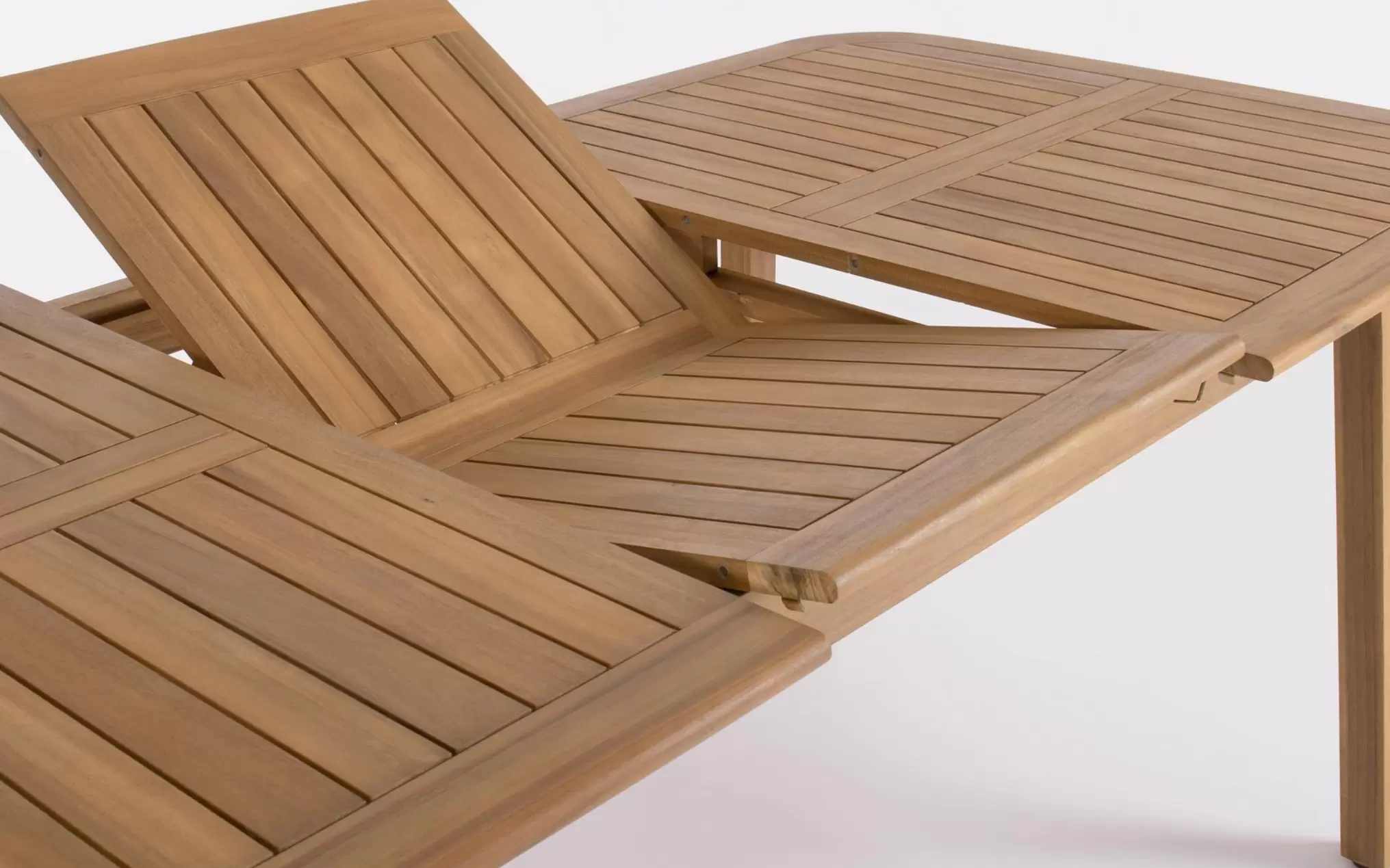 Całość konstrukcji opiera się na grubych, stabilnych nogach z litego drewna, które gwarantują sztywność mebla nawet przy pełnym rozłożeniu. Zastosowanie ocynkowanych śrub oraz precyzyjnych połączeń stolarskich sprawia, że stół jest przygotowany na wieloletnią ekspozycję zewnętrzną. Prosty montaż nóg pozwala na szybkie przygotowanie mebla do użytku, tworząc solidną bazę do rodzinnych posiłków na świeżym powietrzu.
