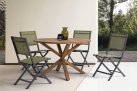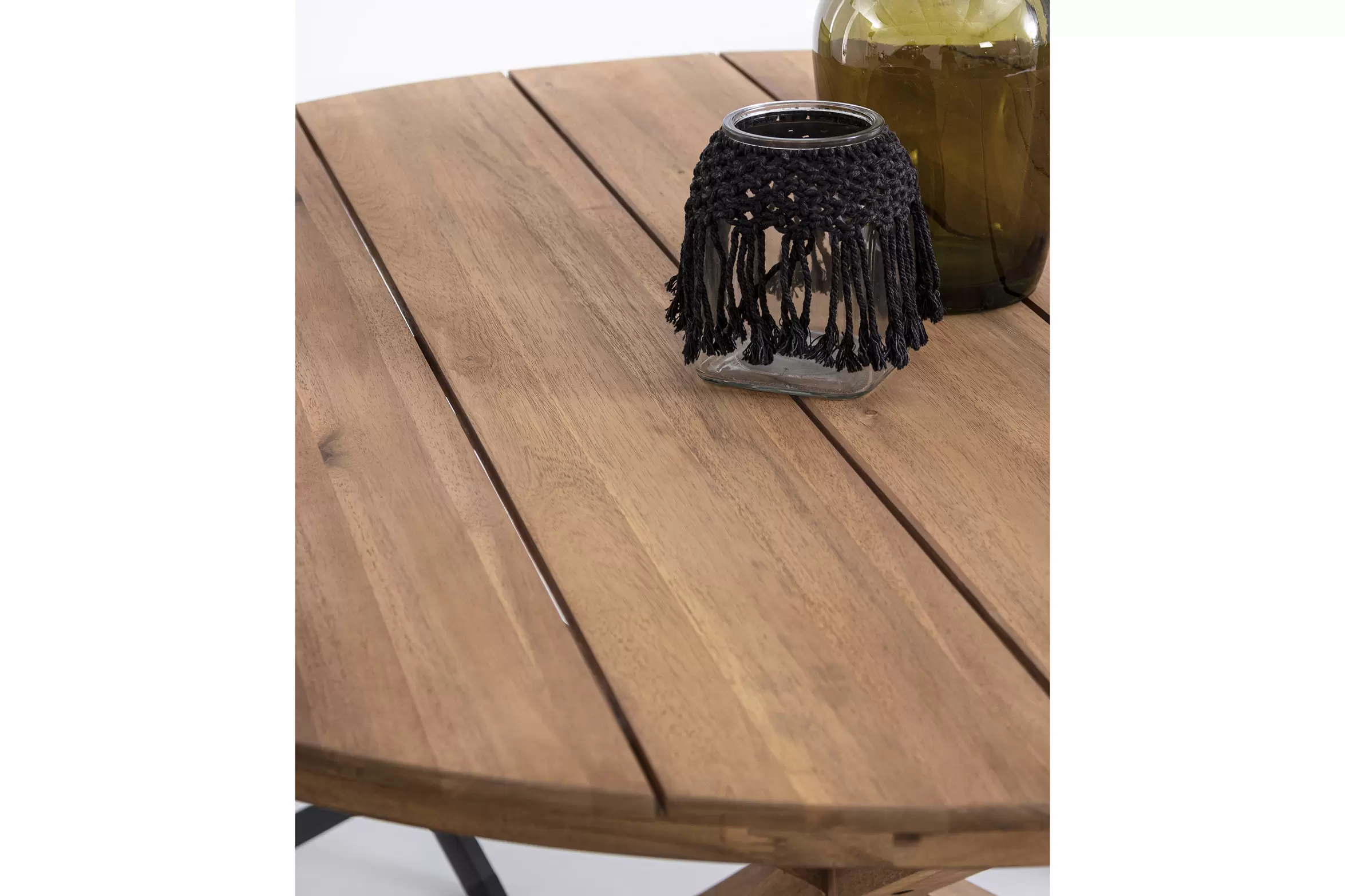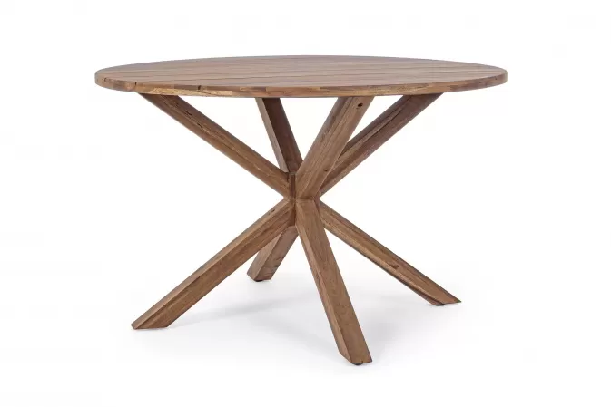 Stół okrągły z drewna akacjowego do wnętrz, ogrodu zimowego i na zadaszony taras.
