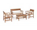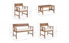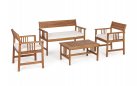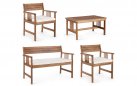 Zestaw kawowy na balkon z drewna akacjowego. Na siedziskach jasne poduszki. Idealny na nieduży balkon/taras.