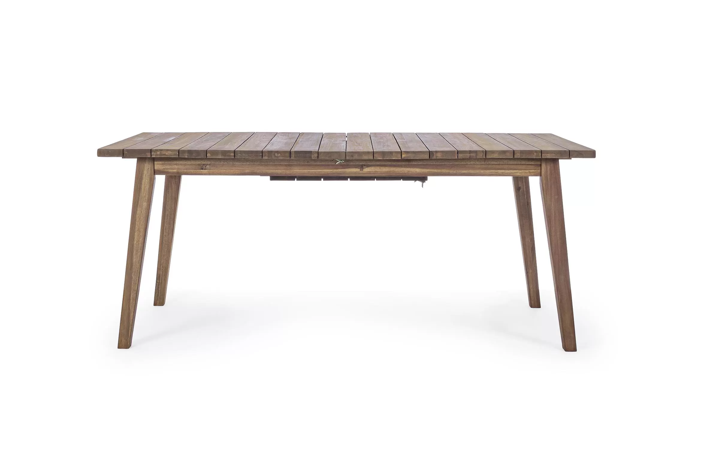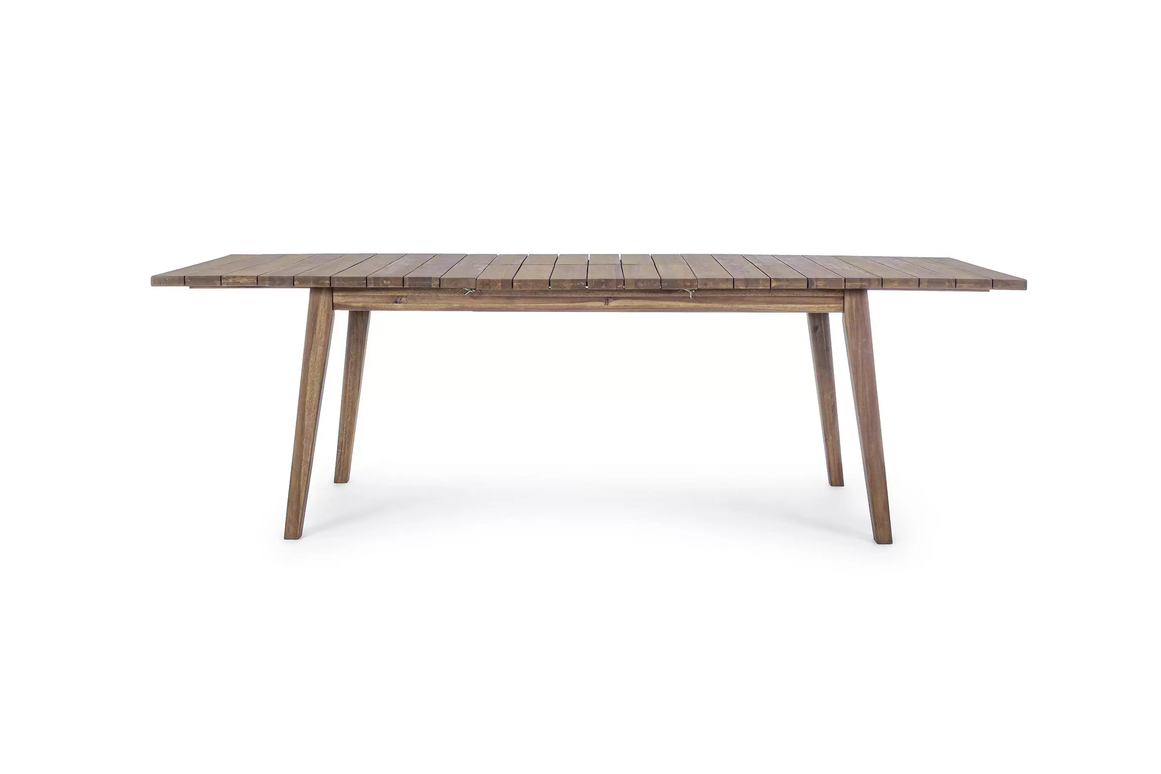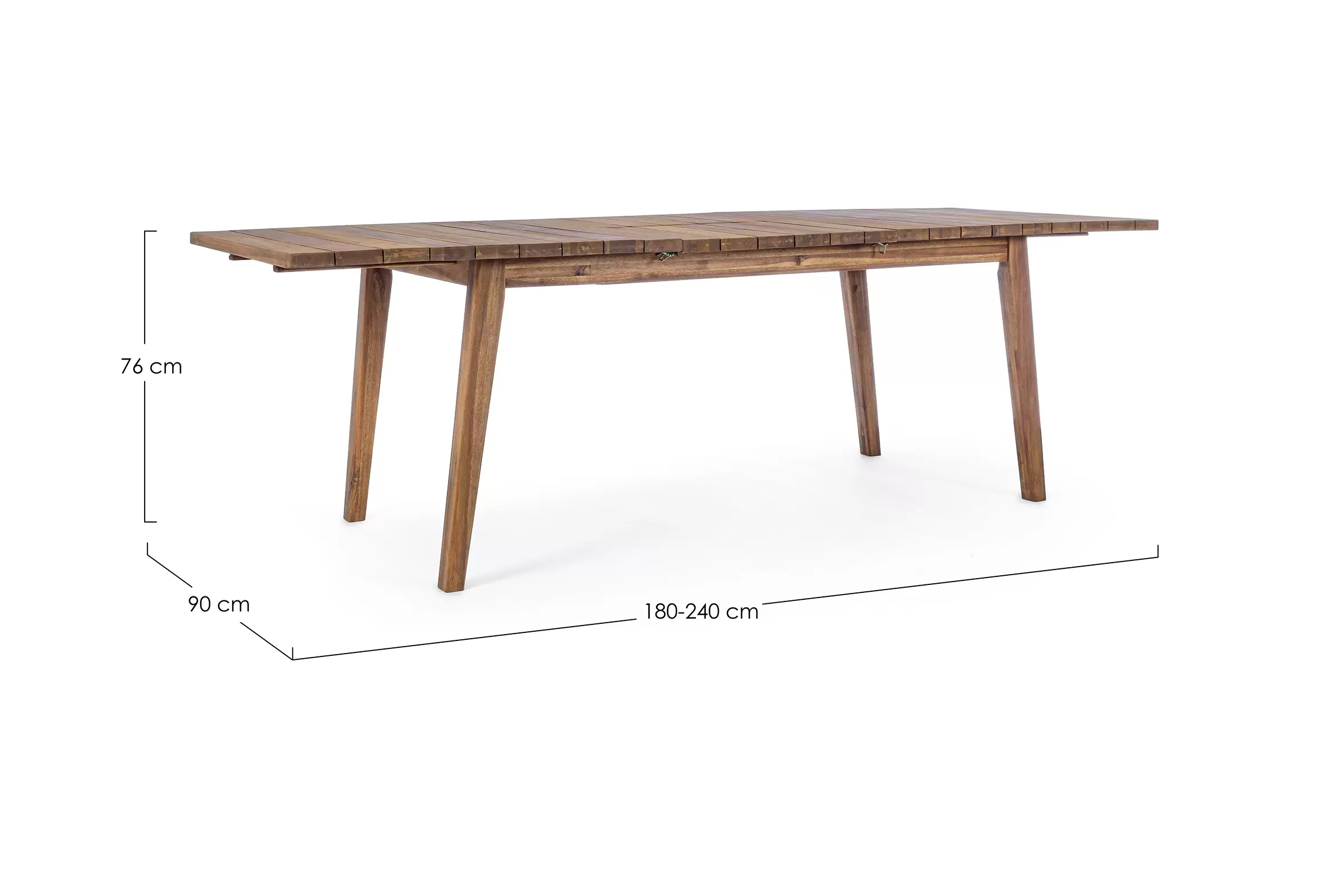 Stół z drewna akacjowego do wnętrz, ogrodu zimowego i na zadaszony taras. Wydłużany blat z motylkowym systemem rozkładania.