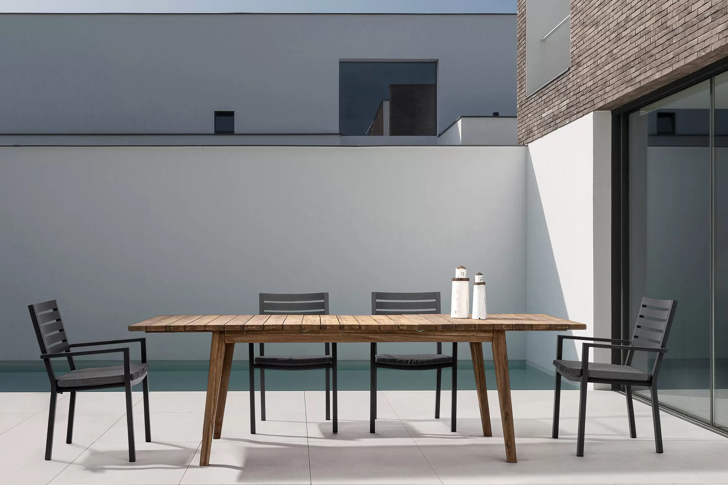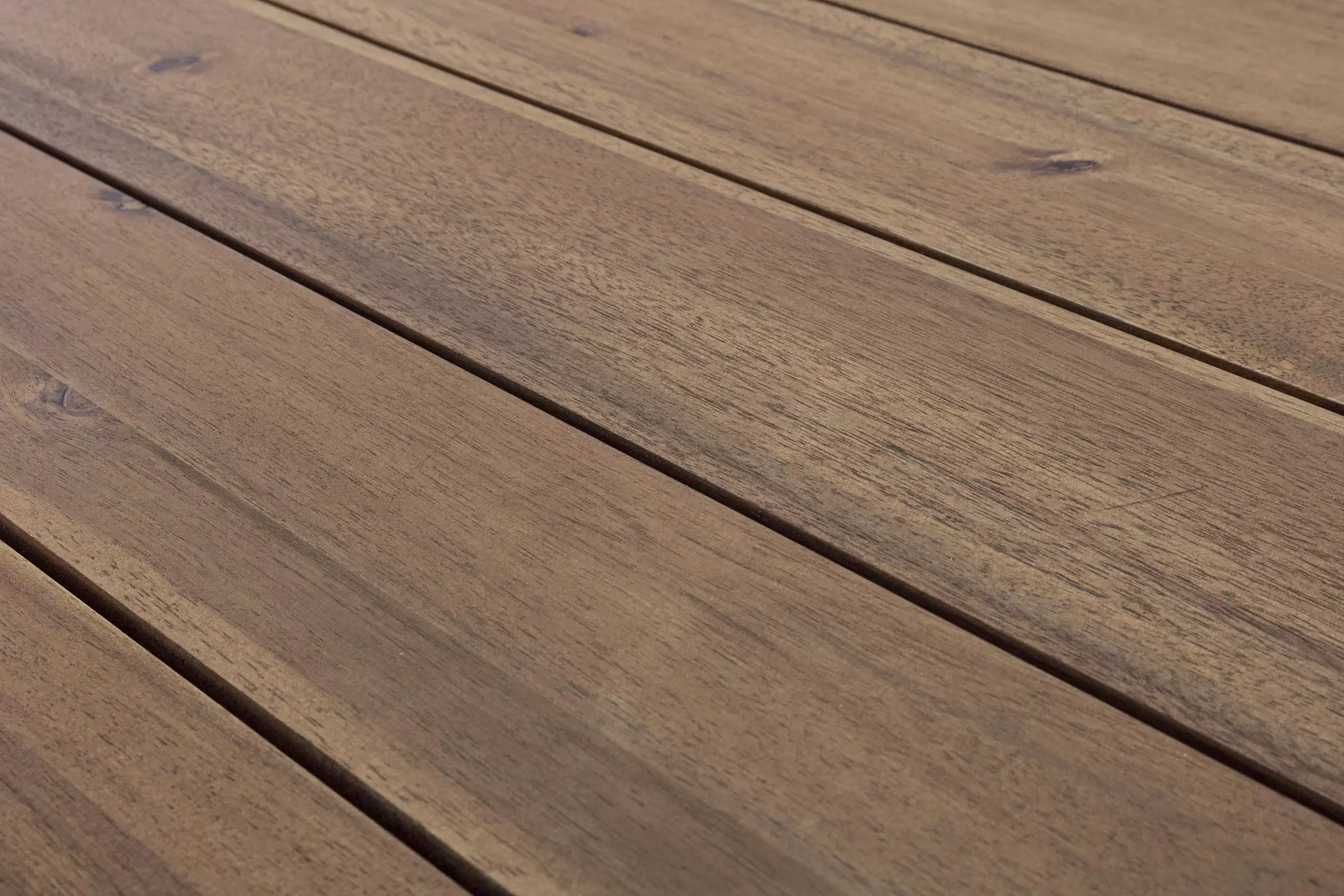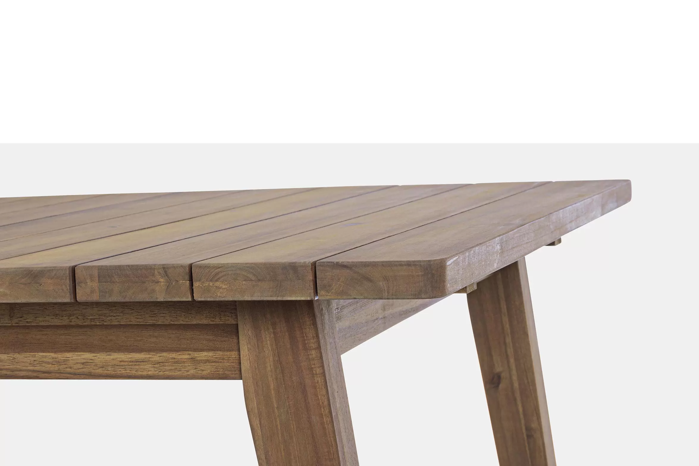 Stół z drewna akacjowego do wnętrz, ogrodu zimowego i na zadaszony taras. Wydłużany blat z motylkowym systemem rozkładania.