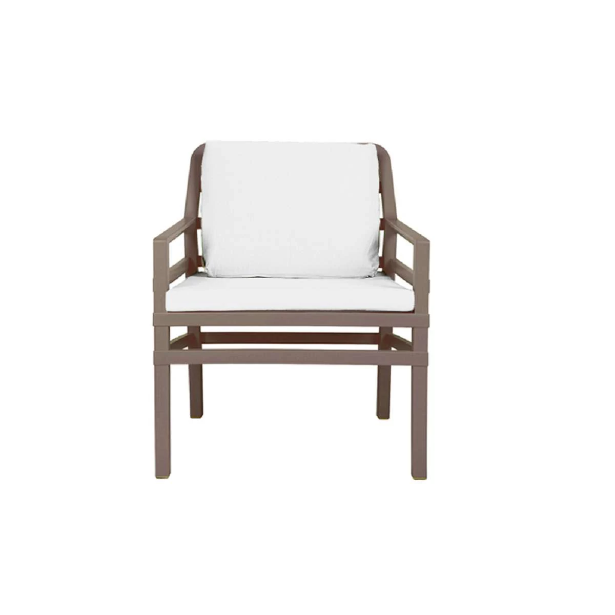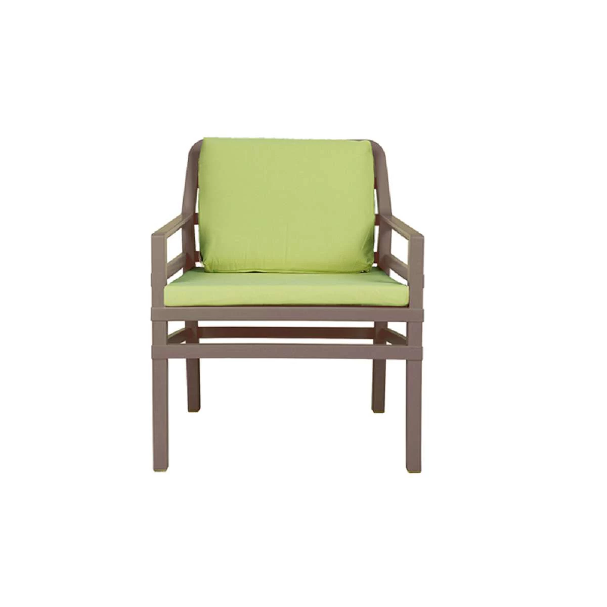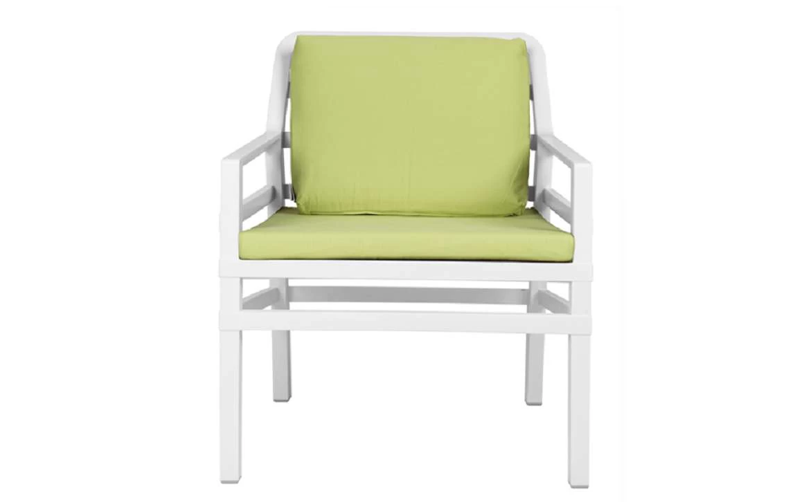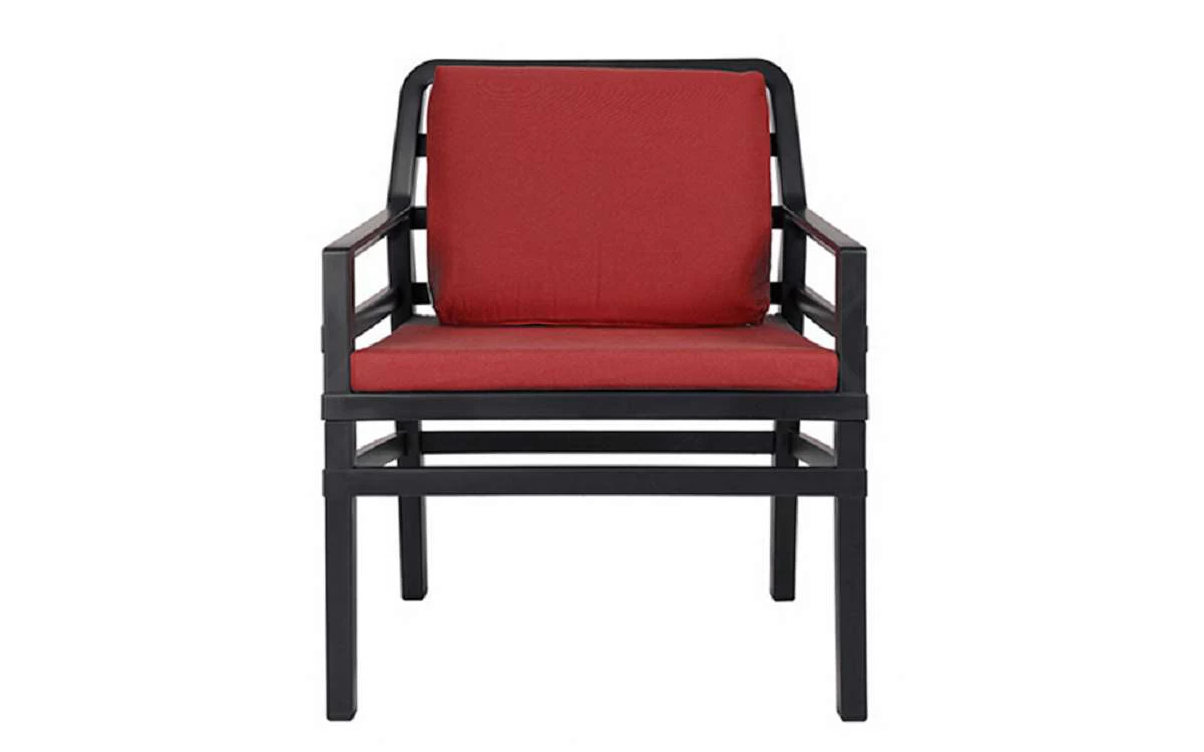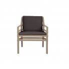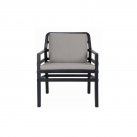 Elegancki fotel wypoczynkowy z polipropylenu wzmocnionego włóknem szklanymi. Nowoczesna forma i wygodne siedzisko oraz materiały powodują, że może być użytkowana cały rok na zewnątrz. W całości wykonany z włókna szklanego oraz z żywicy syntetycznej (żywica polipropylenowa z dodatkami zabezpieczającymi przed promieniowaniem UV, barwiona w masie).