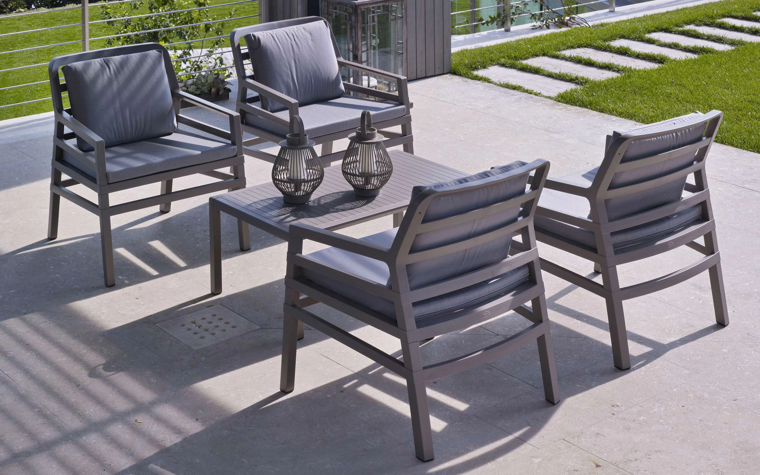 W komplecie ze stolikami prostokątnym lub kwadratowym ARIA otrzymujemy komplety wypoczynkowe.