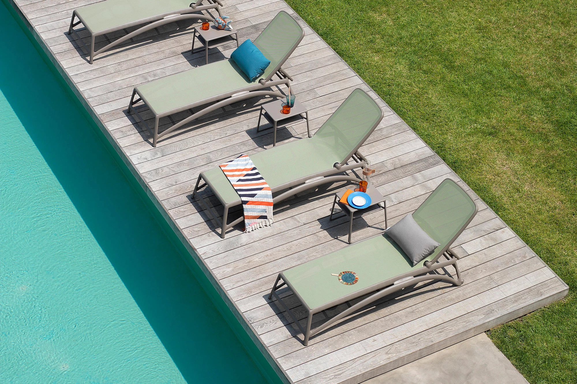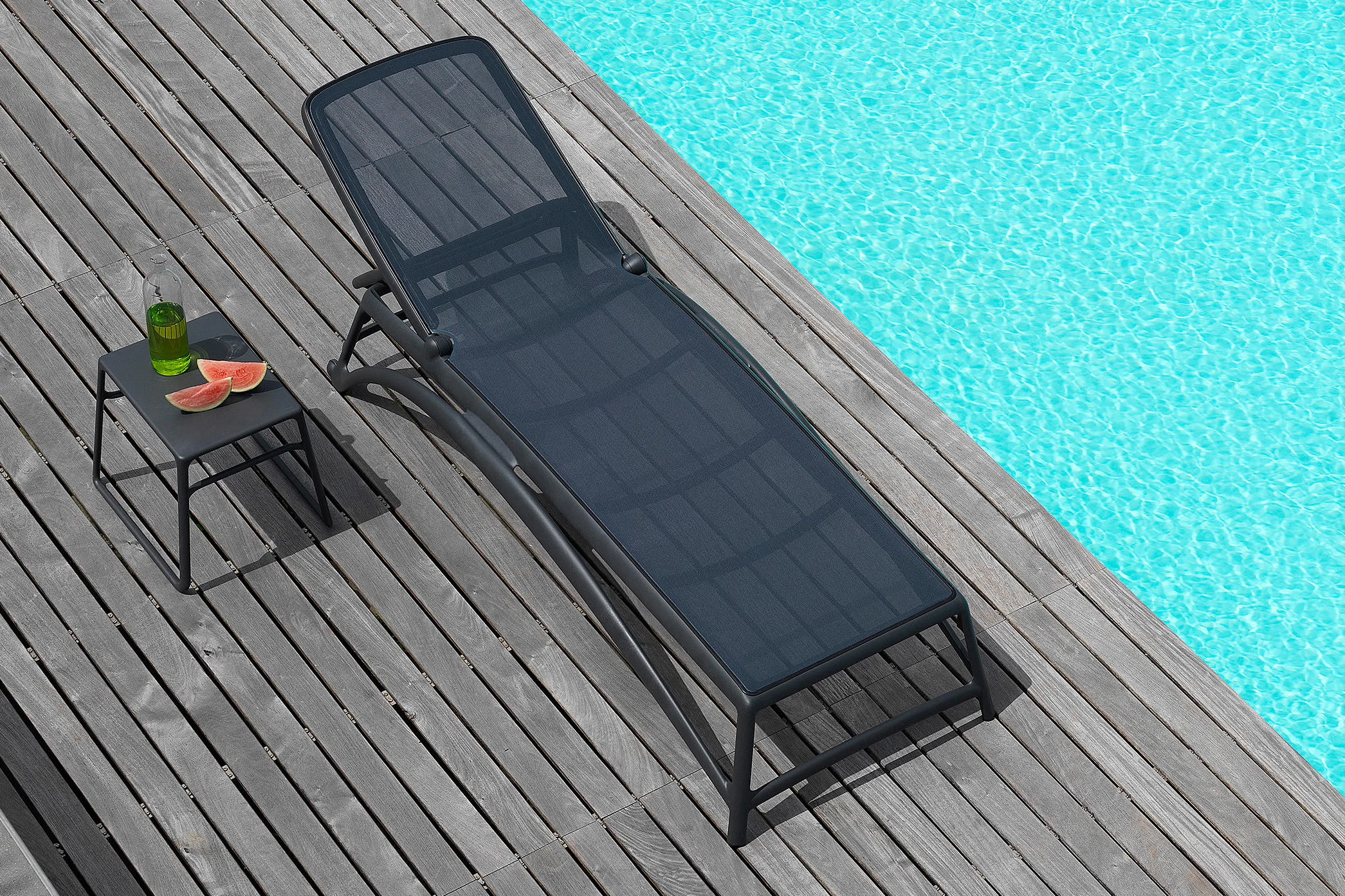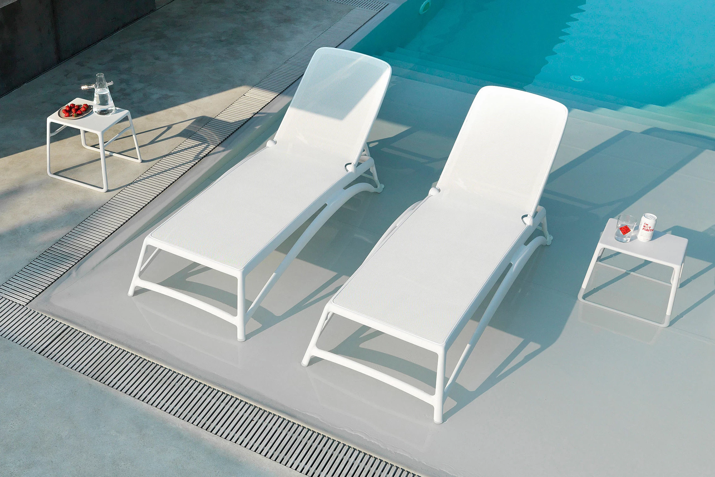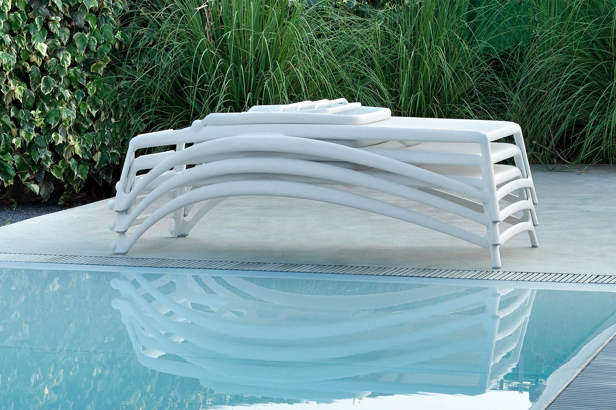 Leżak na basen i do ogrodu Atlantico o prostej konstrukcji z trwałego i odpornego na działanie UV polipropylenu i siedziska z wodoodpornego materiału. Znakomicie sprawdzi się w przestrzeni publicznej: w spa, basenach hotelowych a także oczywiście w prywatnych ogrodach.