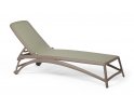 Oparcie leżaka jest regulowane w czterostopniowych pozycjach. Kółka umieszczone w tylnej ramie, ułatwiają przemieszczanie leżaka.