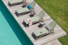 Siedzisko z szybkoschnącej tkaniny pozwala na korzystanie z kąpieli słonecznych zaraz po wyjściu z basenu. Wszystkie kombinacje kolorystyczne w tabeli poniżej. Konstrukcja leżaka dostępna w 4 kolorach.