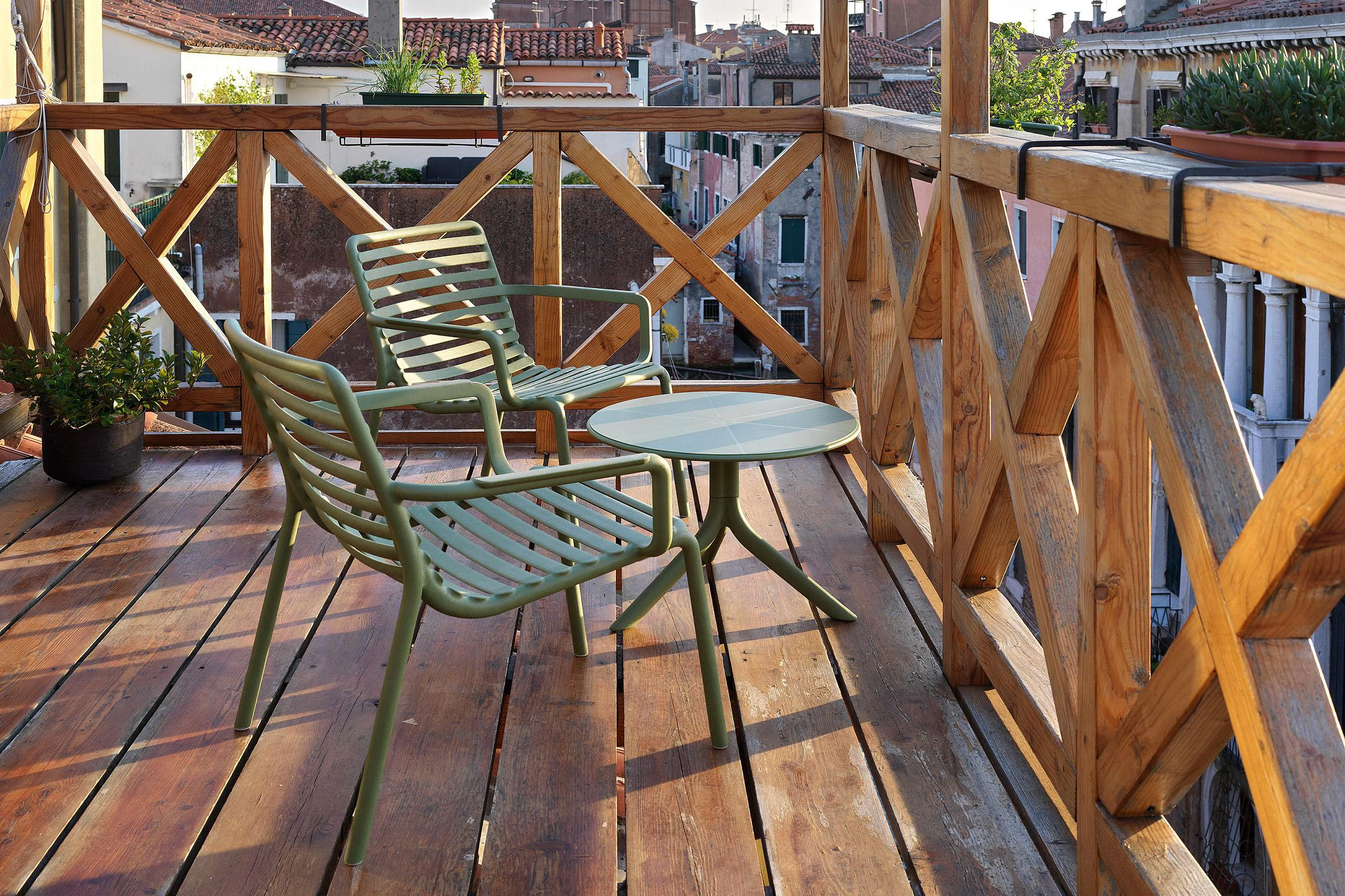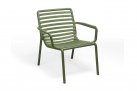 Sztaplowany fotel wykonany z polipropylenu wzmocnionego włóknem szklanym z podłokietnikami. Nowoczesna forma i wygodne siedzisko oraz materiały powodują, że może być użytkowana cały rok na zewnątrz. W całości wykonana z włókna szklanego oraz z żywicy syntetycznej (żywica polipropylenowa z dodatkami zabezpieczającymi przed promieniowaniem UV, barwiona w masie).