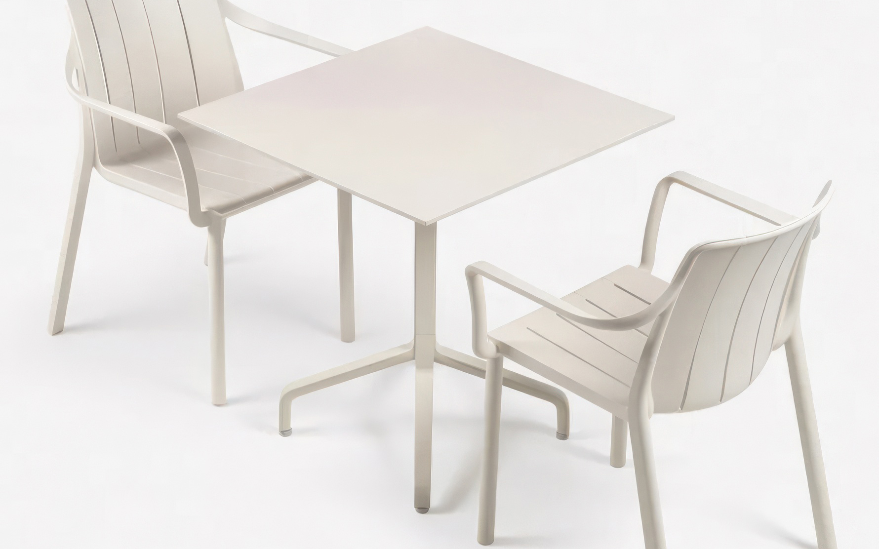 Szeroko rozstawione ramiona podstawy gwarantują pewne podparcie, a regulowane stopki pozwalają na stabilne ustawienie stołu na każdej powierzchni. FRASCA HIGH FOLDING współpracuje z blatami okrągłymi i kwadratowymi, tworząc praktyczne stoliki barowe do użytku wewnętrznego i zewnętrznego.