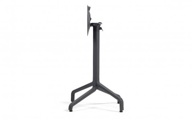 Podstawa wykonana jest z aluminium malowanego proszkowo, odpornego na korozję, wilgoć i promieniowanie UV. Szeroko rozstawione ramiona gwarantują pewne podparcie dla mniejszych blatów, a regulowane stopki umożliwiają precyzyjne wypoziomowanie stołu na każdej powierzchni.