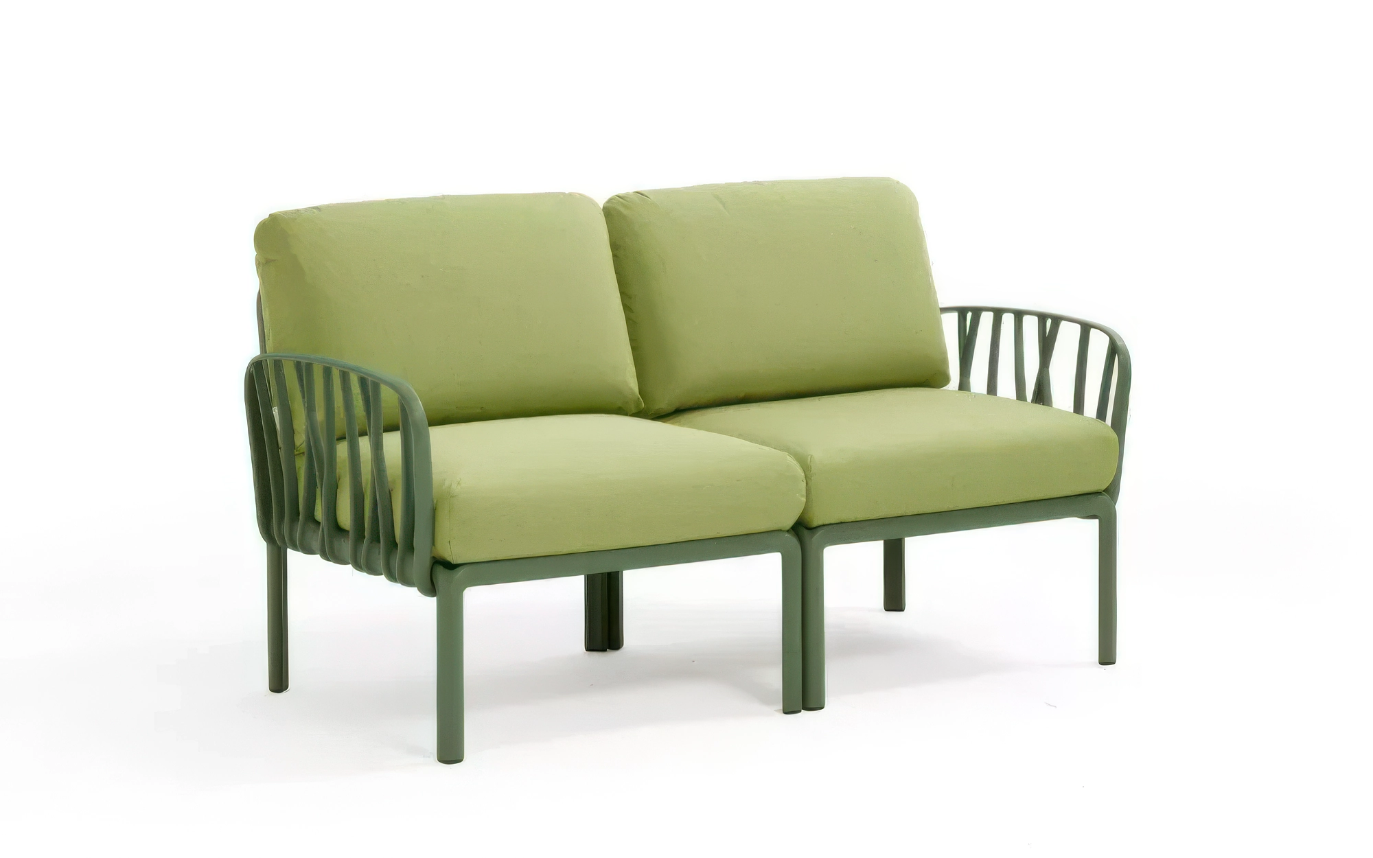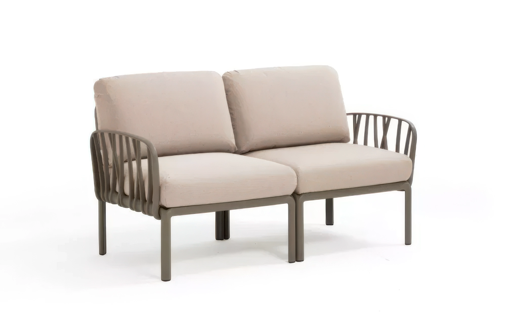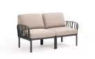 KOMODO Sofa 2‑osobowa to modułowy mebel ogrodowy włoskiej marki Nardi, zbudowany z dwóch elementów bocznych połączonych w liniową sofę. Organiczna forma oparcia inspirowana gałęziami drzew nadaje jej lekkości, a jednocześnie zapewnia stabilność i trwałość.