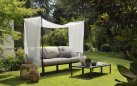 Do sofy można zamontować dedykowany daszek Komodo Ombra 2, tworzący lekką osłonę przeciwsłoneczną. Stelaż wykonany jest z polipropylenu wzmacnianego włóknem szklanym, a tkanina VELO zapewnia przewiewność i delikatne zacienienie.