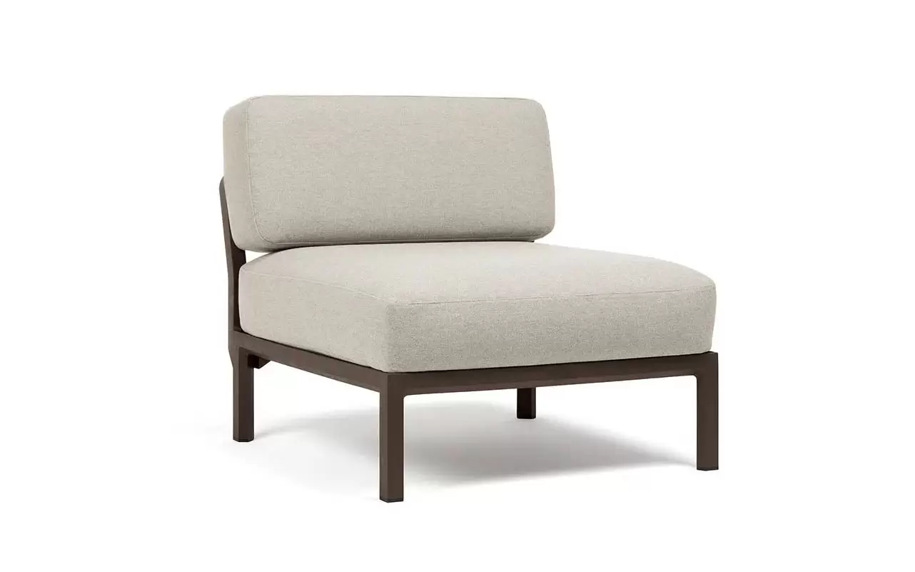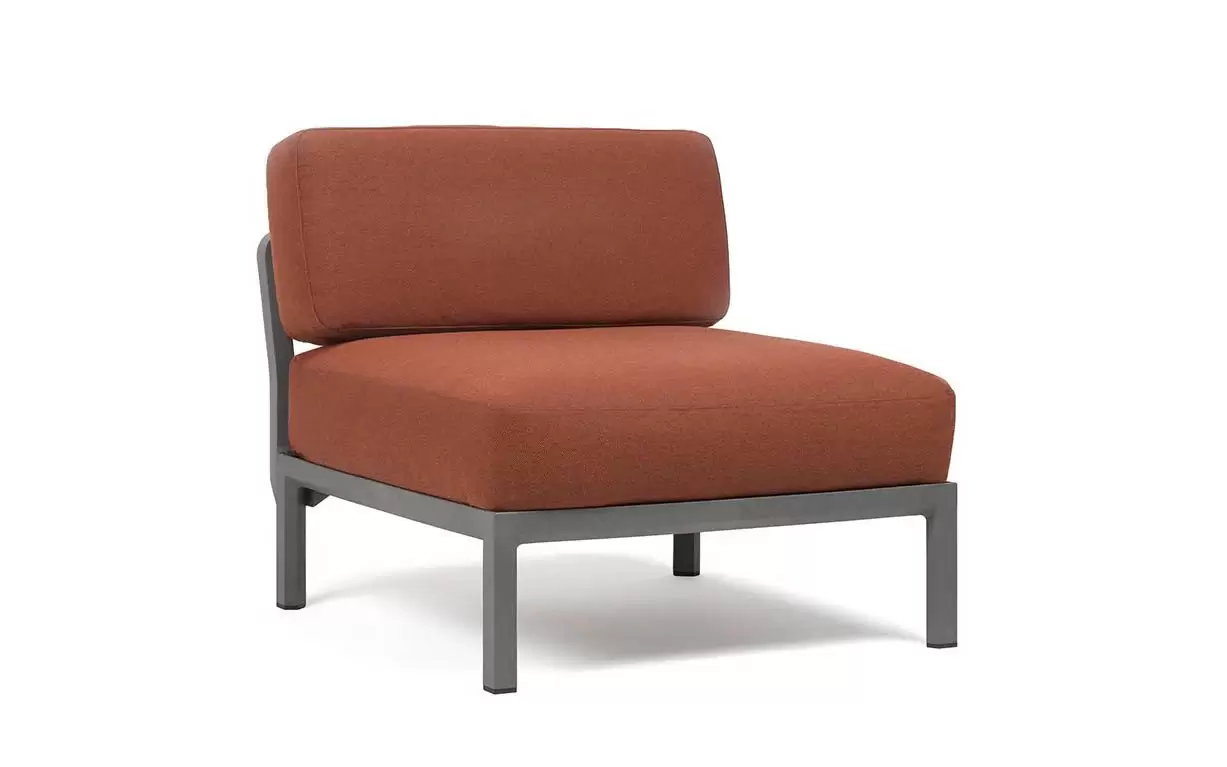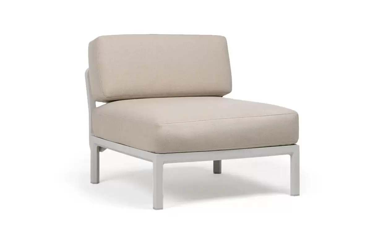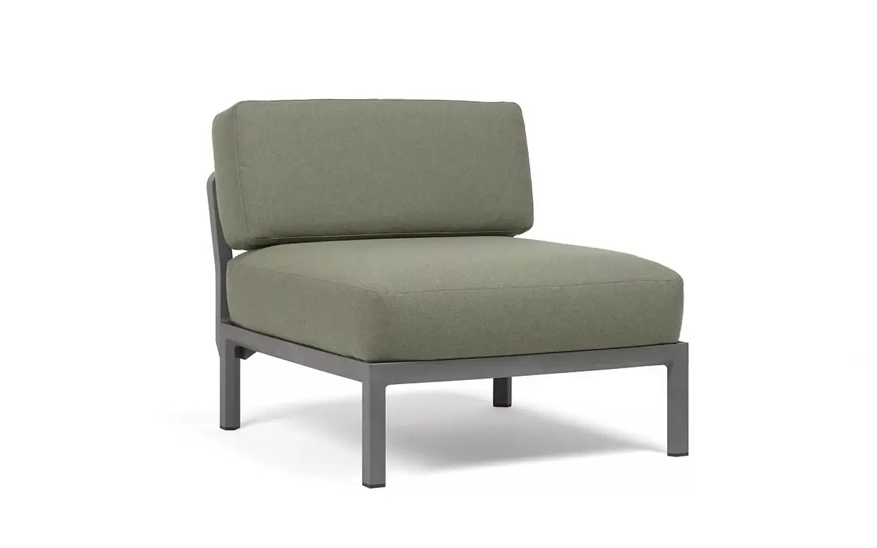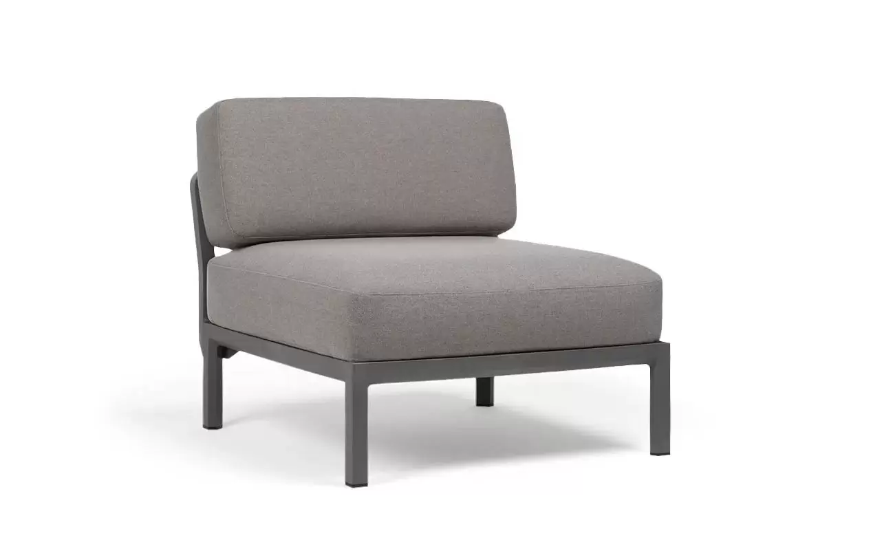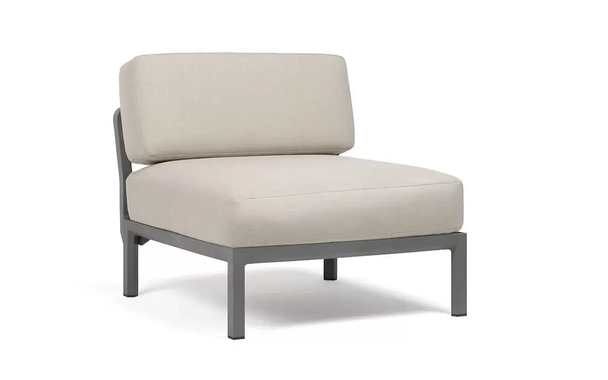 Moduł centralny charakteryzuje się głębokim, komfortowym siedziskiem oraz ergonomicznym oparciem. W komplecie znajdują się profesjonalne poduszki outdoor o zwiększonej odporności na wilgoć i promieniowanie UV. Pokrowce są zdejmowane, co znacznie ułatwia proces czyszczenia. Szeroka paleta kolorystyczna pozwala na idealne dopasowanie koloru konstrukcji do barwy tkaniny Sunbrella.