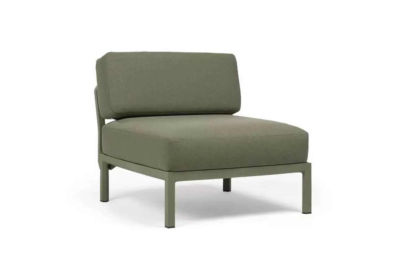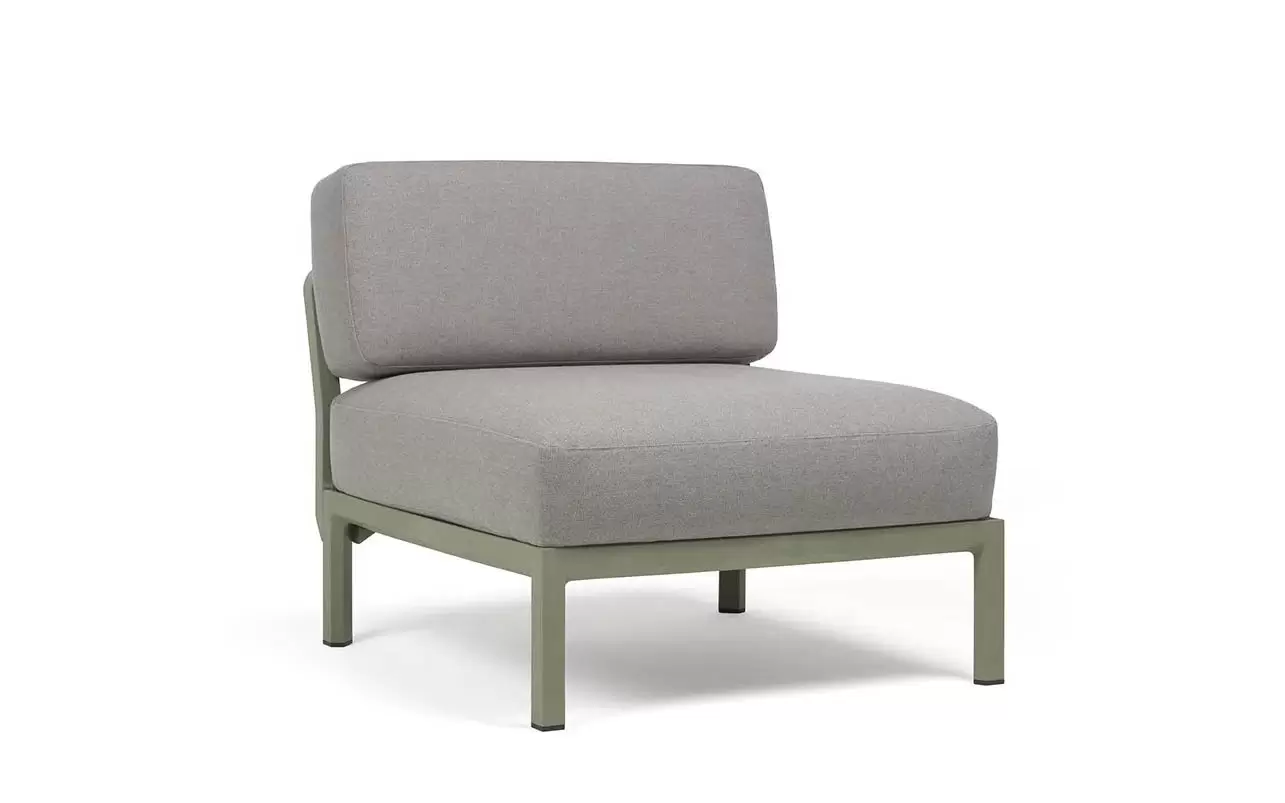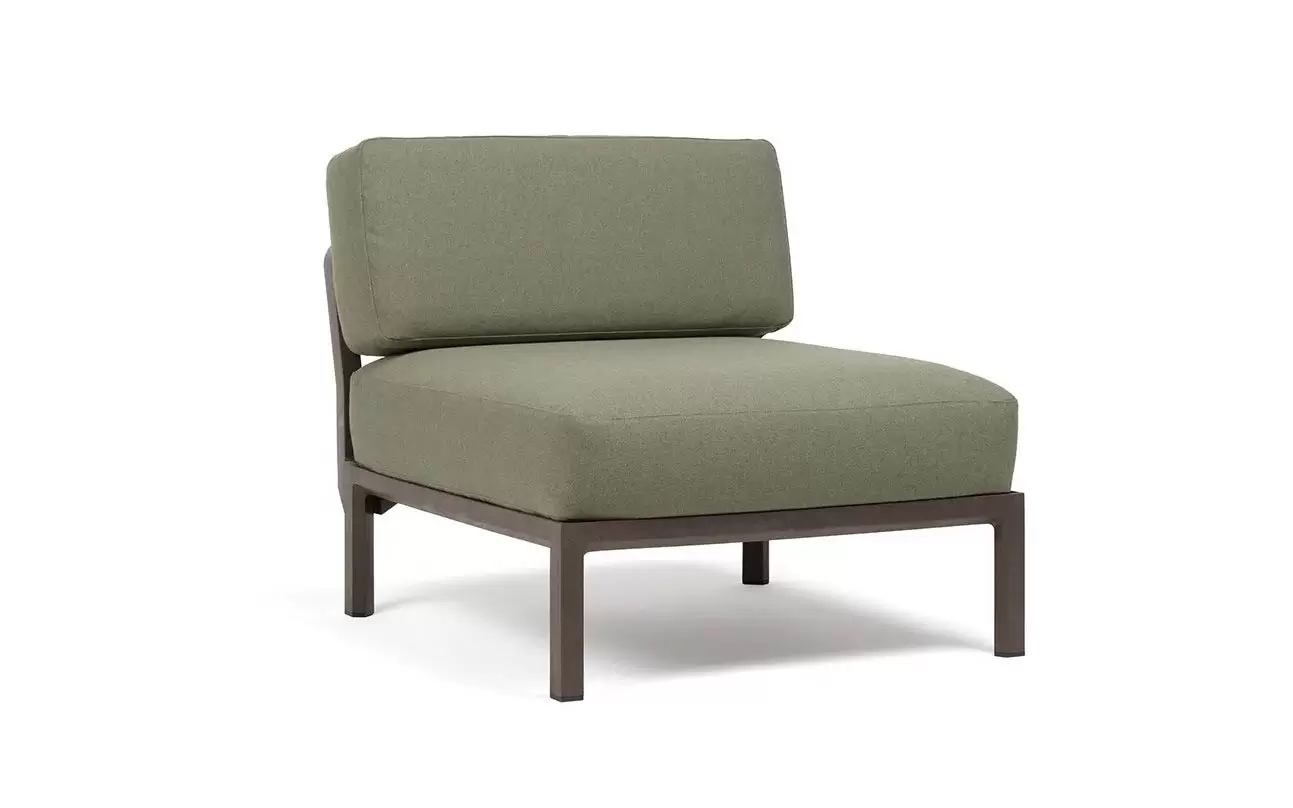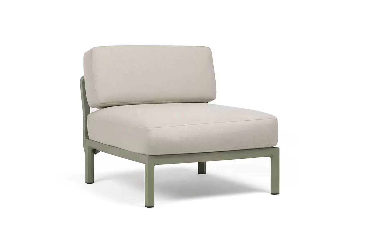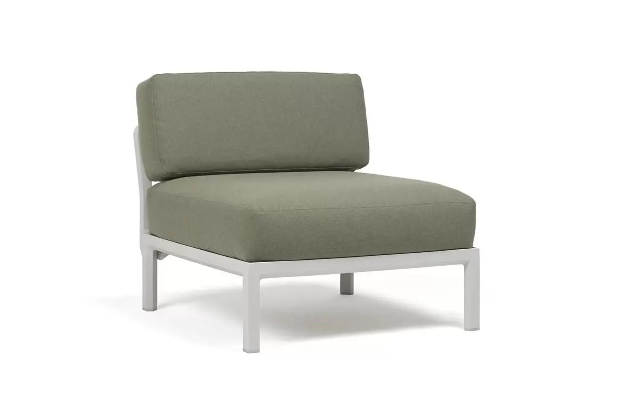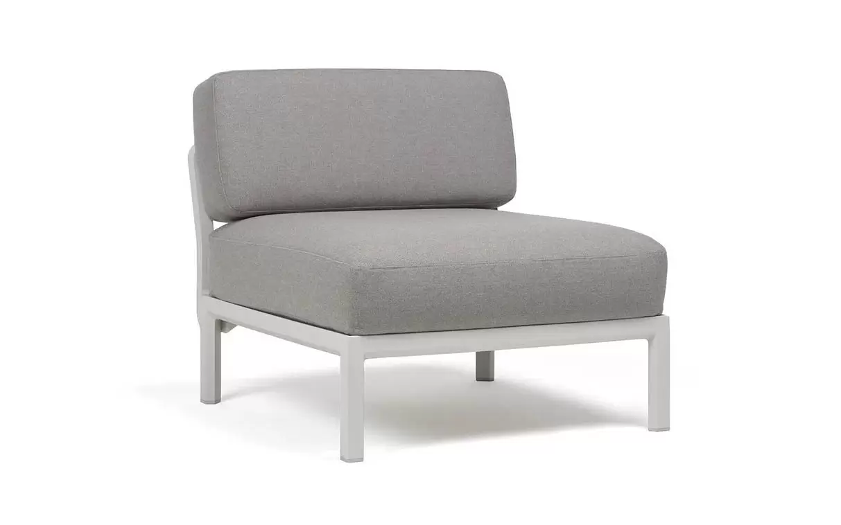 Moduł centralny charakteryzuje się głębokim, komfortowym siedziskiem oraz ergonomicznym oparciem. W komplecie znajdują się profesjonalne poduszki outdoor o zwiększonej odporności na wilgoć i promieniowanie UV. Pokrowce są zdejmowane, co znacznie ułatwia proces czyszczenia. Szeroka paleta kolorystyczna pozwala na idealne dopasowanie koloru konstrukcji do barwy tkaniny Sunbrella.
