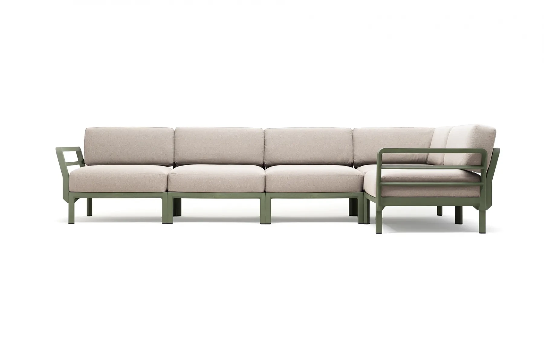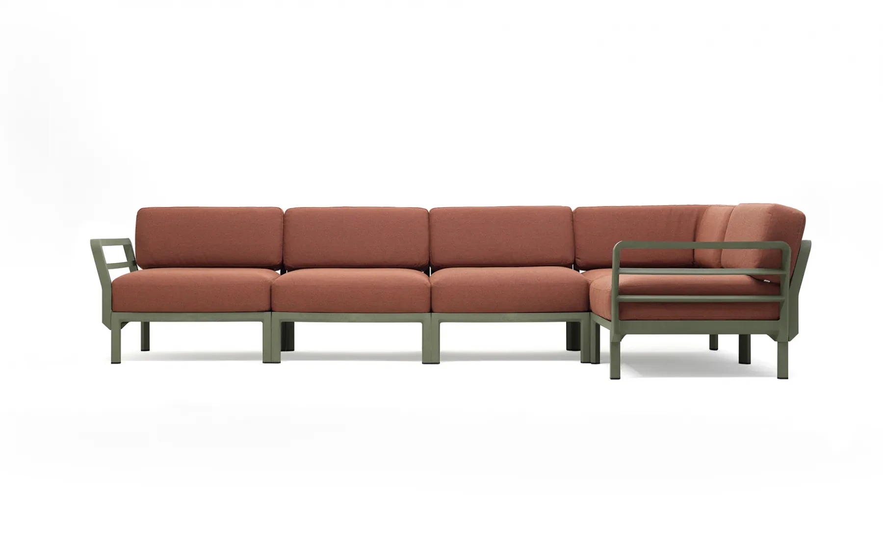 MAXIMO 5 to modułowy narożnik ogrodowy włoskiej marki Nardi, zaprojektowany z myślą o nowoczesnych tarasach i przestrzeniach wypoczynkowych. Konstrukcja wykonana jest z polipropylenu wzmocnionego włóknem szklanym, co zapewnia wysoką stabilność, odporność na warunki atmosferyczne i długą żywotność.