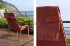 Fotel posiada obszerne i wygodne siedzisko, które gwarantuje użytkownikowi maksymalny komfort. Na tylnej części ażurowego oparcia znajdują się klipsy mocujące, które pozwalają na umieszczenie ręcznika plażowego lub koca. Dzięki temu nie musisz martwić się o ich brak w trakcie korzystania z fotela. Krzesło można również sztaplować, co pozwala zaoszczędzić miejsce na przechowywanie większej liczby foteli.