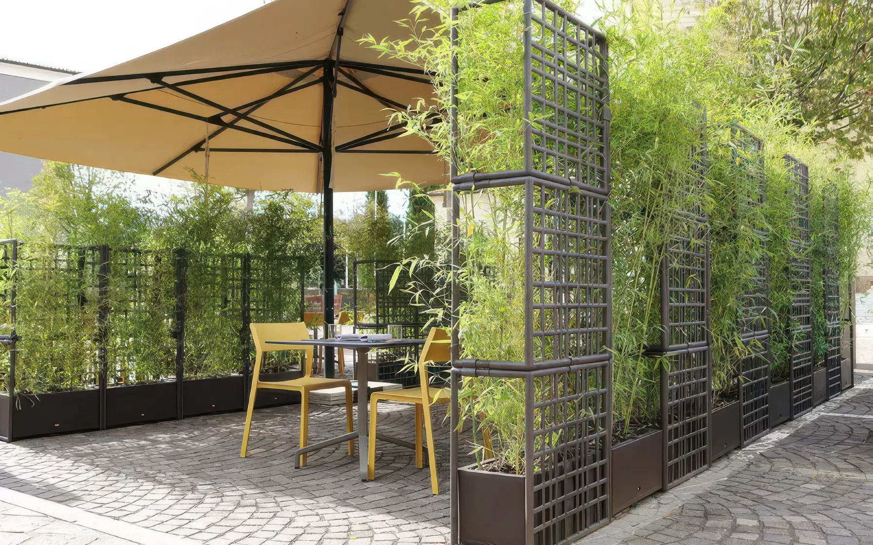 SIPARIO 3 to zaawansowany system modułowych ścianek działowych włoskiej marki Nardi, zaprojektowany specjalnie do aranżacji przestrzeni zewnętrznych. Wykonany z regenerowanego polipropylenu, wyróżnia się asymetrycznym wzorem siatki oraz wyjątkową stabilnością, dzięki czemu doskonale sprawdza się w ogrodach, na tarasach, patio oraz w przestrzeniach komercyjnych.