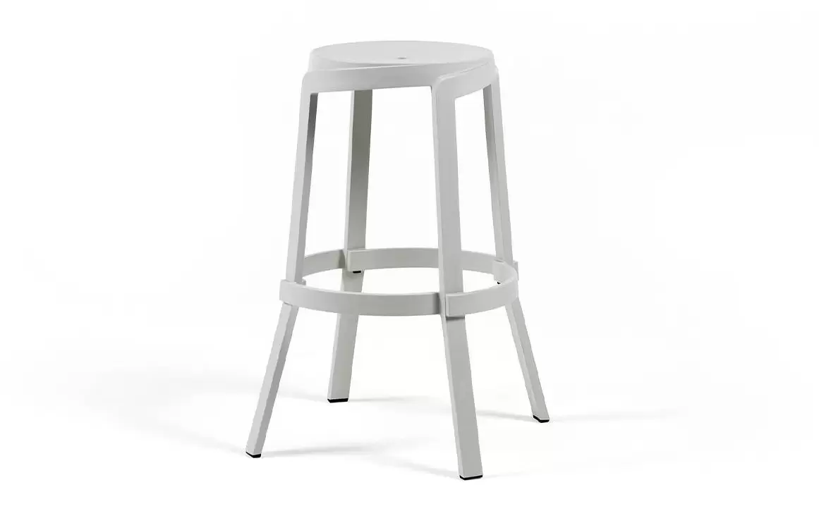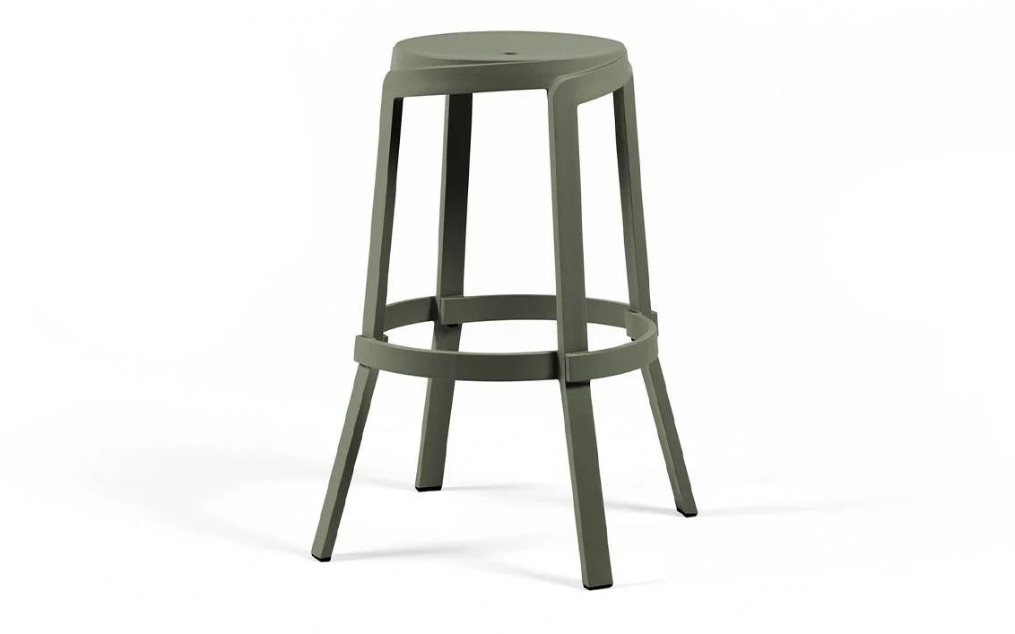 Materiał jest odporny na promieniowanie UV, wilgoć i zmienne warunki atmosferyczne. Stołek posiada antypoślizgowe stopki, a dzięki konstrukcji monoblokowej jest sztaplowany, co ułatwia przechowywanie. Należy do ekologicznej kolekcji Nardi Regeneration, wykonanej w dużej części z materiałów pochodzących z recyklingu.
