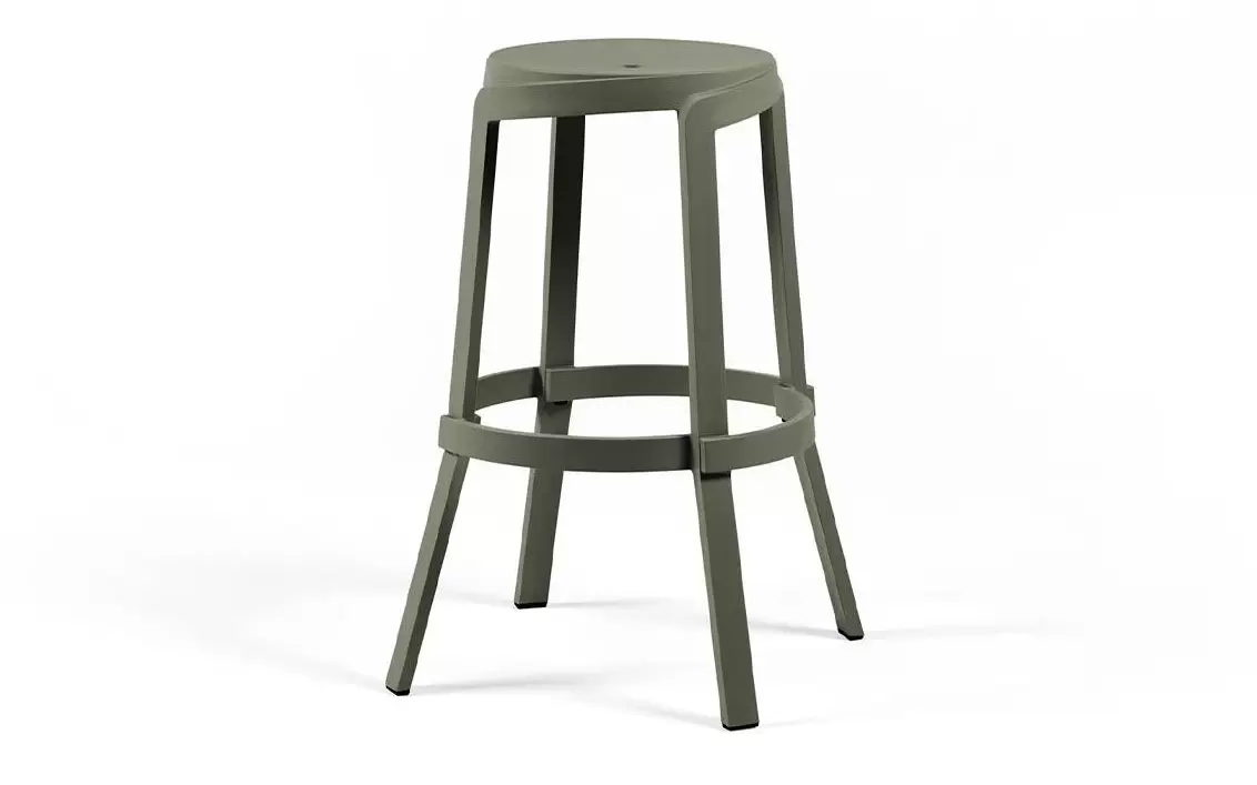 STACK MAXI to minimalistyczny stołek barowy włoskiej marki Nardi, wykonany z polipropylenu wzmacnianego włóknem szklanym. Okrągłe siedzisko, prosta forma oraz matowe wykończenie o efekcie vintage sprawiają, że doskonale sprawdza się w nowoczesnych aranżacjach ogrodowych i komercyjnych.