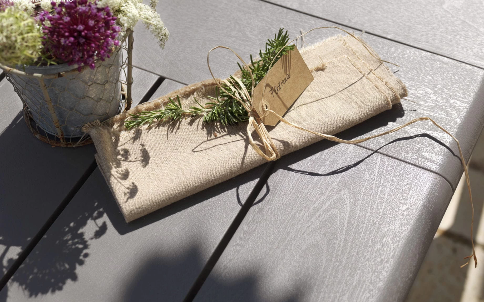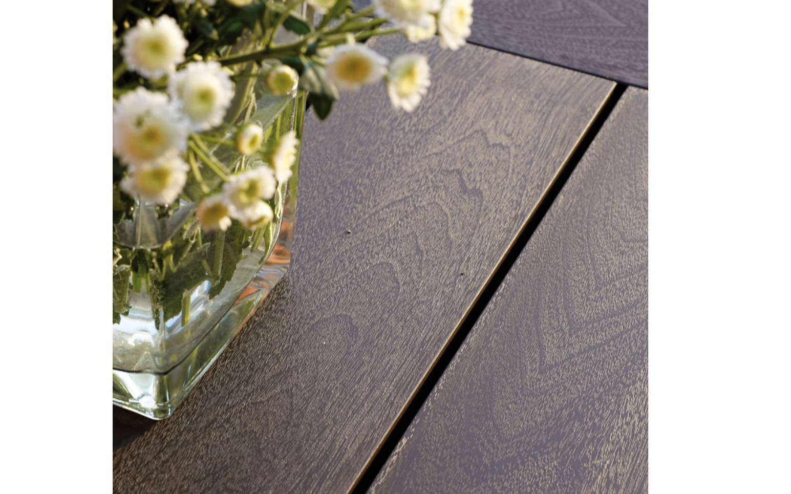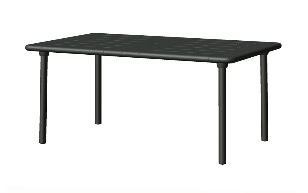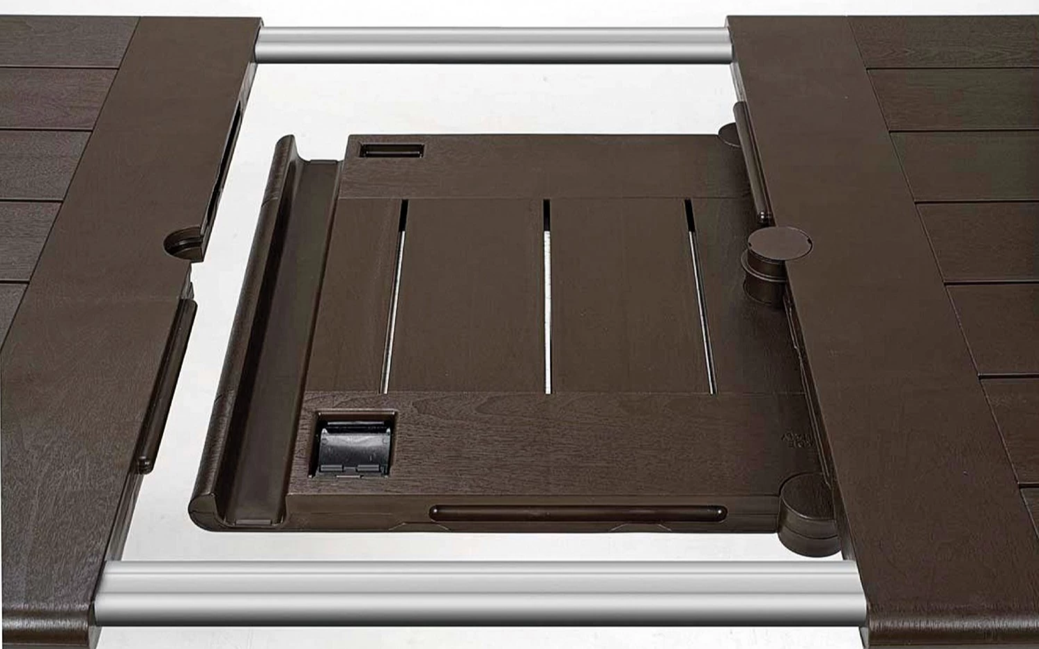 Blat stołu wykonany jest z żywicy polipropylenowej. To materiał wysokiej jakości, który jest odporny na promieniowanie UV oraz niekorzystne warunki atmosferyczne. Jest także nietoksyczny i antystatyczny. Dzięki takiej konstrukcji stół jest lekki i łatwy w przenoszeniu a także bardzo łatwo utrzymać go w czystości. Blat z imitacją konstrukcji deskowej.