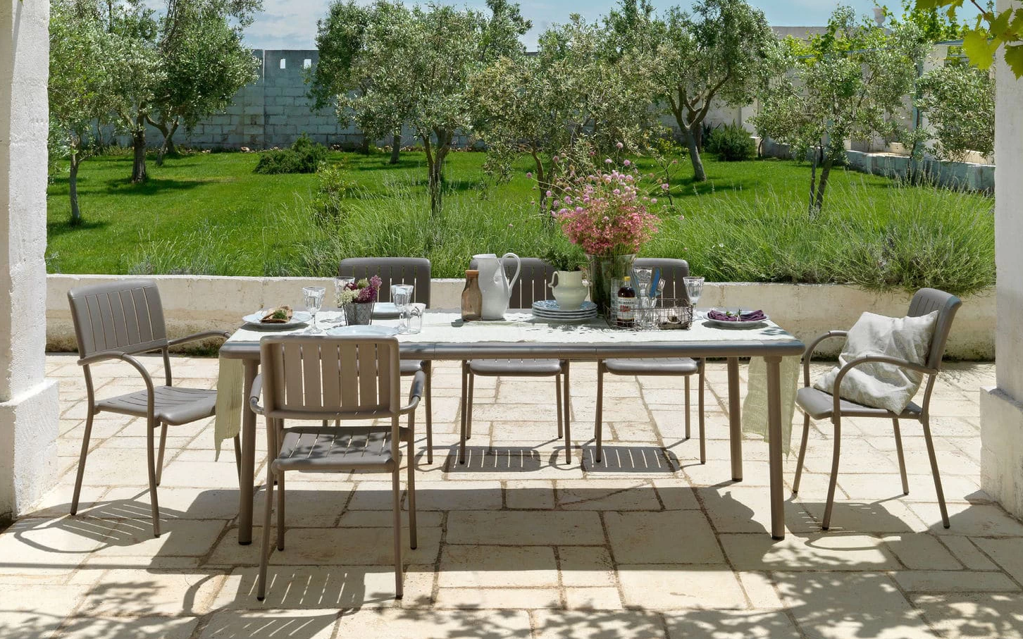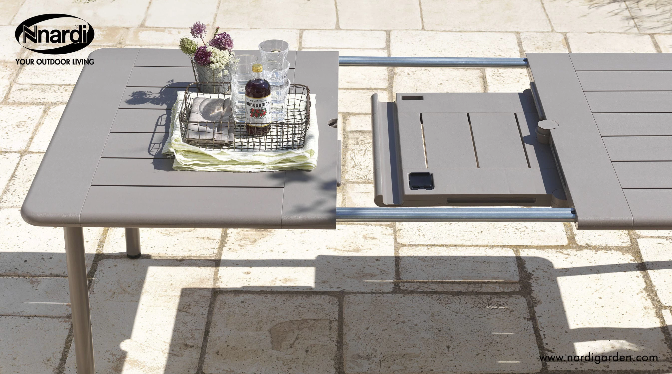 Wydłużany włoski stół ogrodowy MAESTRALE renomowanej firmy Nardi o aluminiowej konstrukcji z blatem z odpornej na działanie warunków atmosferycznych i UV żywicy polipropylenowej wzmocnionej włóknem szklanym DuralTOP.