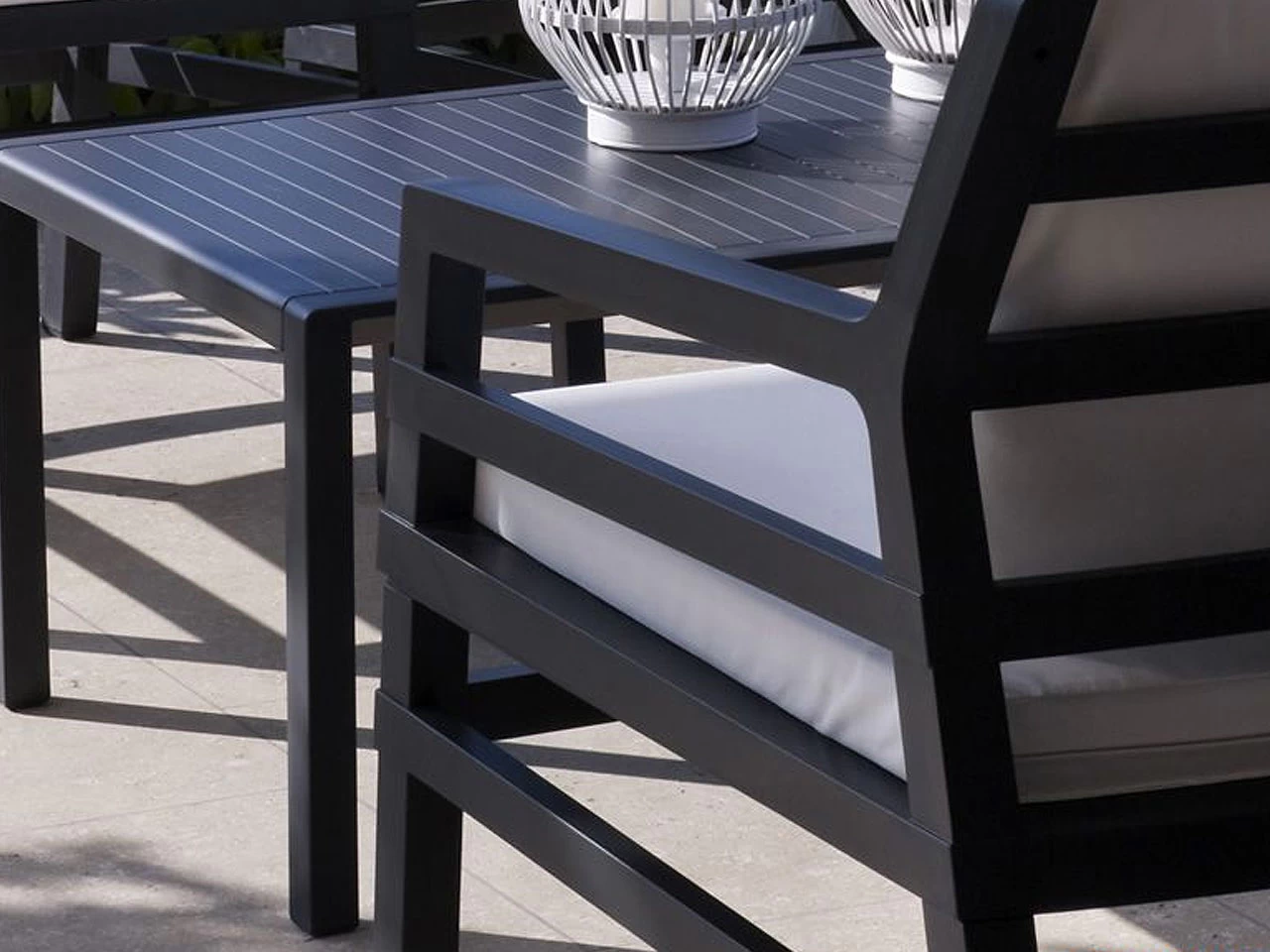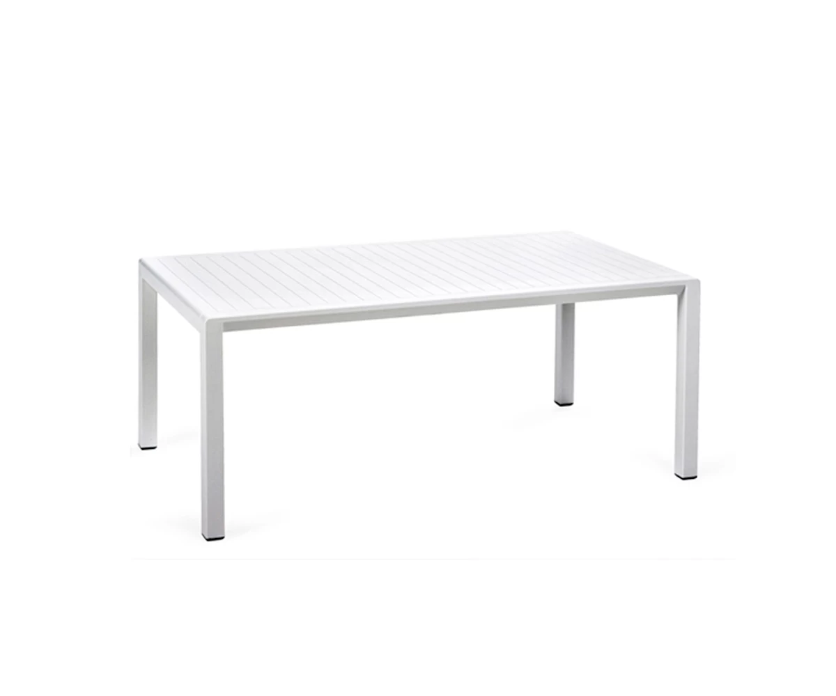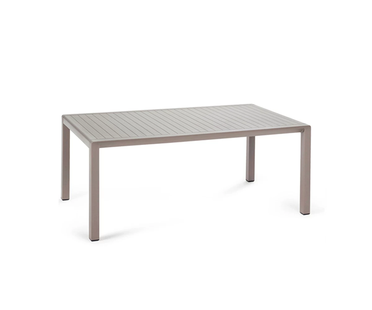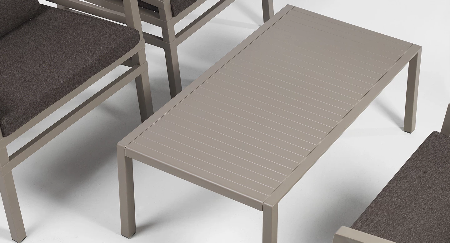 Stolik kawowy prostokątny wykonany z polipropylenu wzmocnionego włóknem szklanym. Blat stolika z imitacją poprzecznych deseczek.