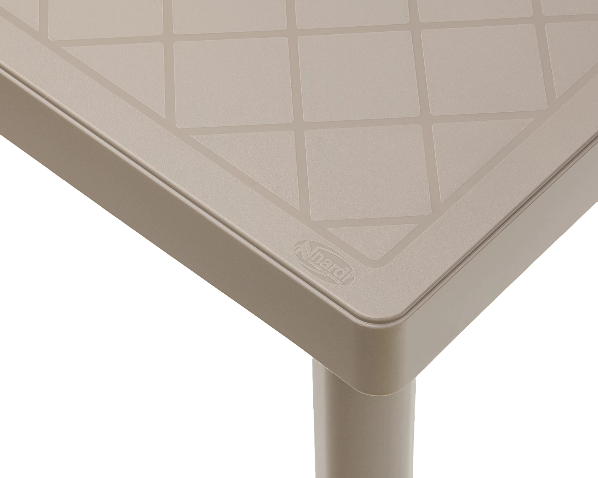 Niski stolik kawowy kwadratowy wykonany z polipropylenu wzmocnionego włóknem szklanym idealnie pasujący do leżaków Nardi.