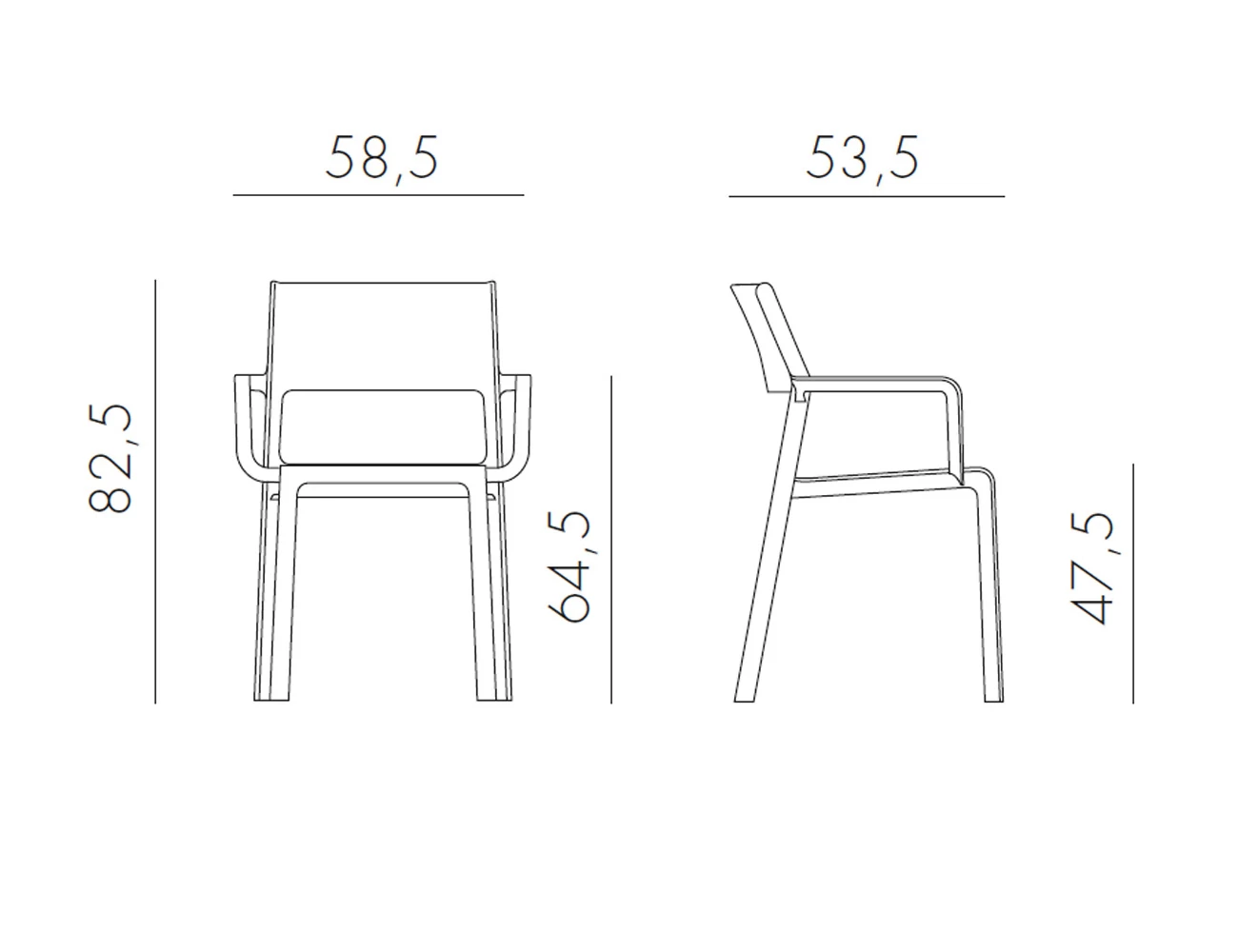 Fotel, którego głównym przeznaczeniem jest dostarczenie eleganckich i trwałych rozwiązań do kawiarni i restauracji. Konstrukcja z odpornego na UV polipropylenu ze włóknem szklanym.