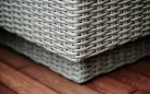 Komplet wykonany z półokrągłego technorattanu, który imitujący naturalny rattan i wyróżnia się dużą odpornością na warunki atmosferyczne, dzięki czemu ten zestaw ogrodowy świetnie sprawdzi się także jako meble tarasowe lub meble balkonowe.