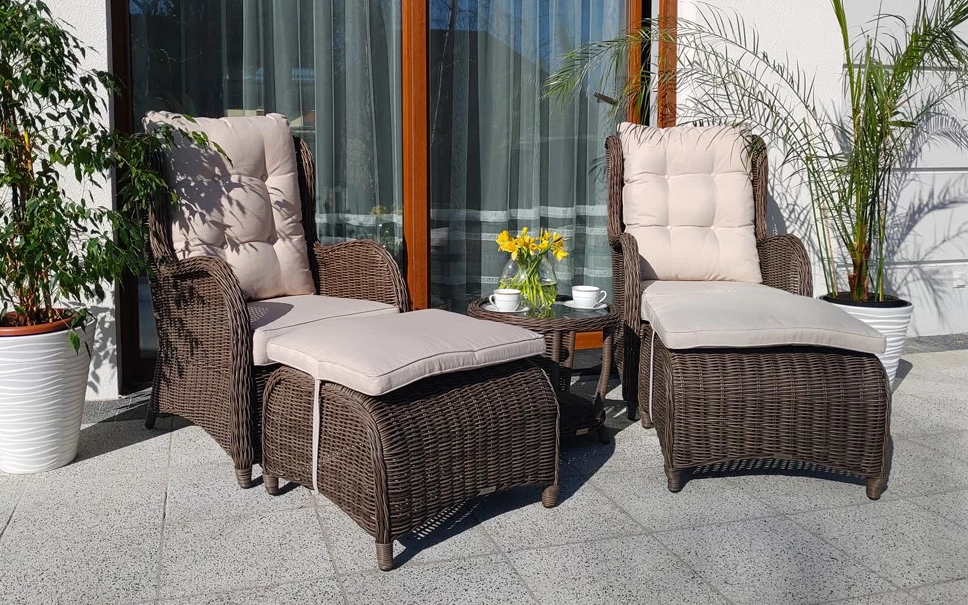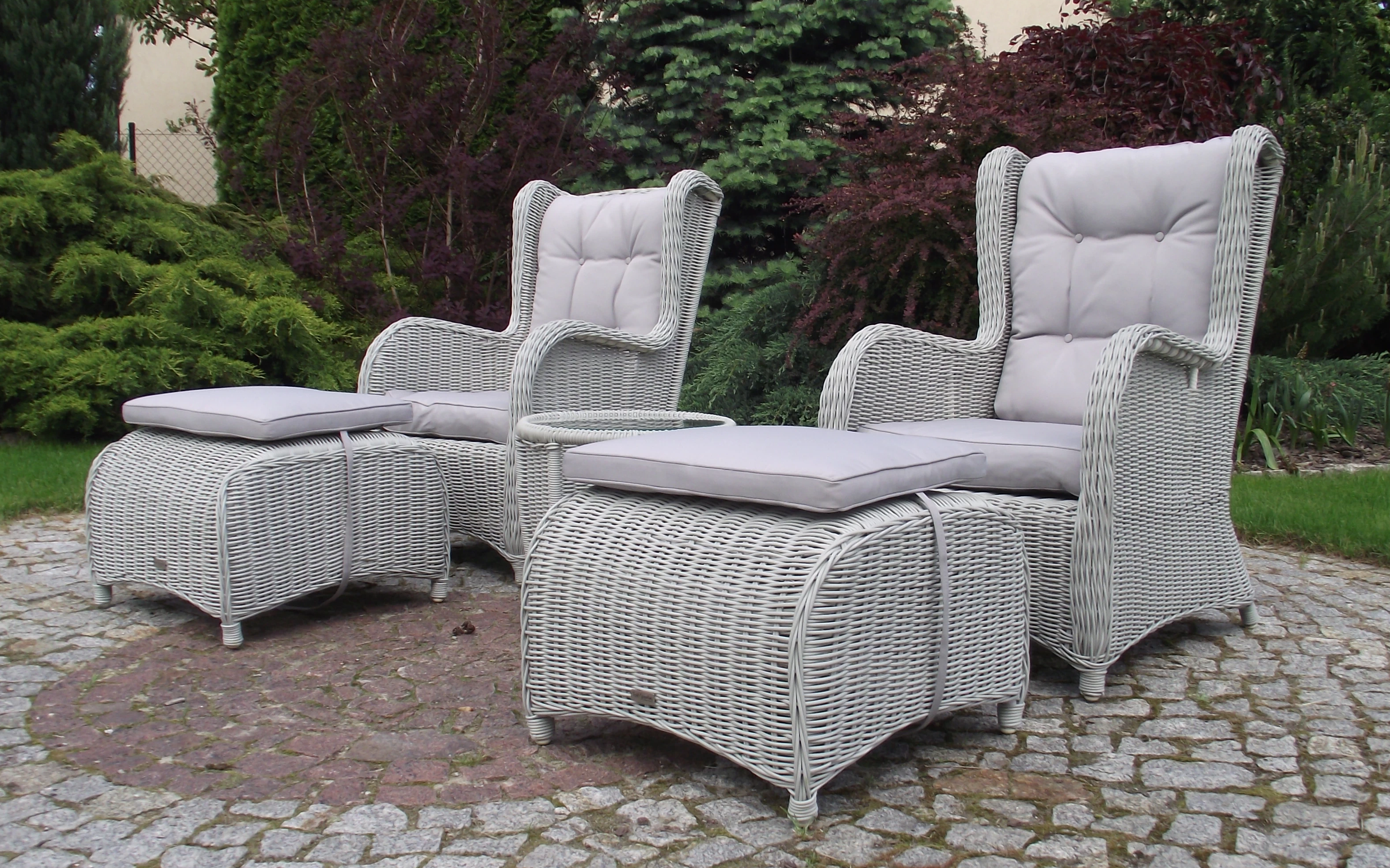 LACONI Komplet dwóch foteli z podnózkami z technorattanu