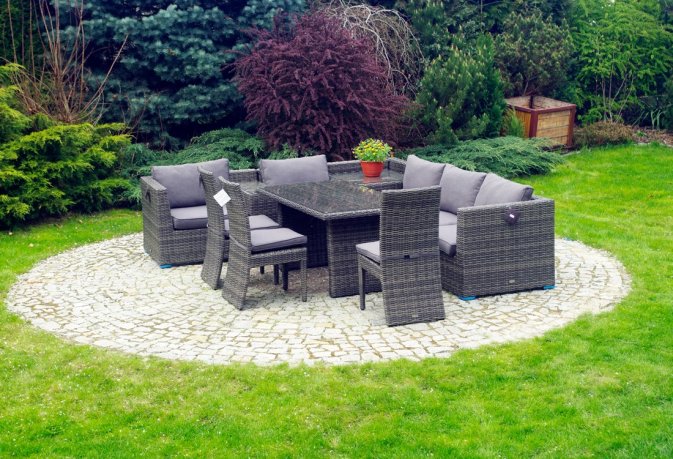 Zestaw modułowych elementów tworzących narożnik wypoczynkowo-obiadowy o wysokich oparciach (79 cm).