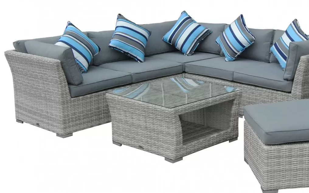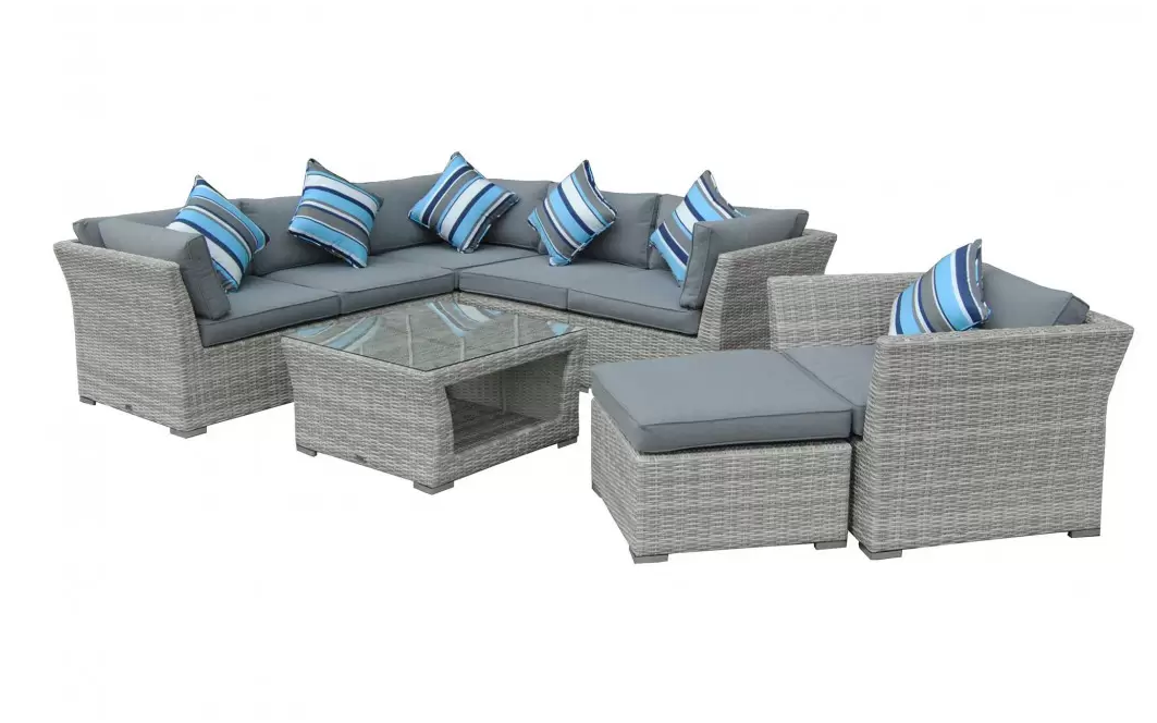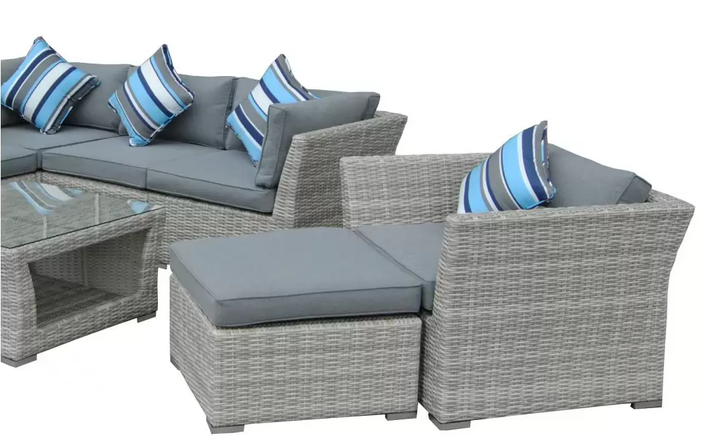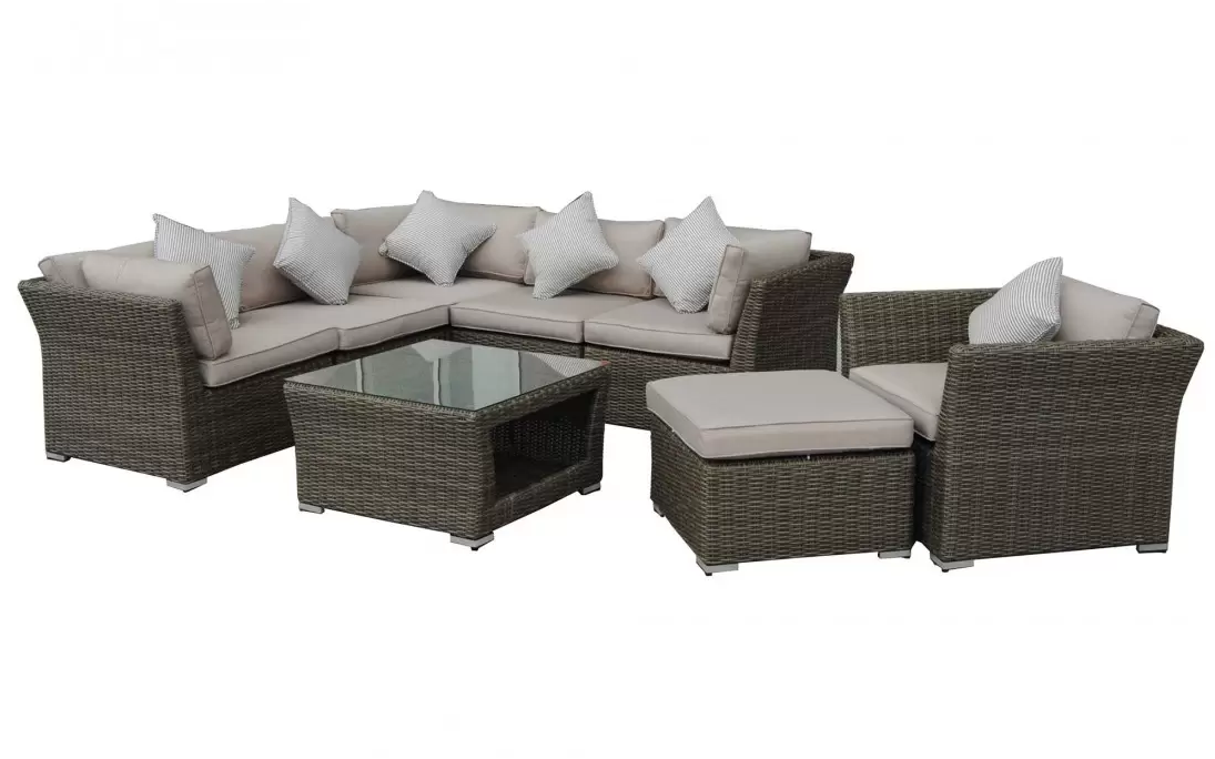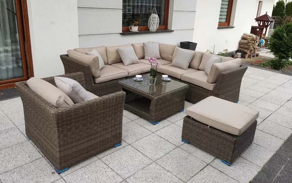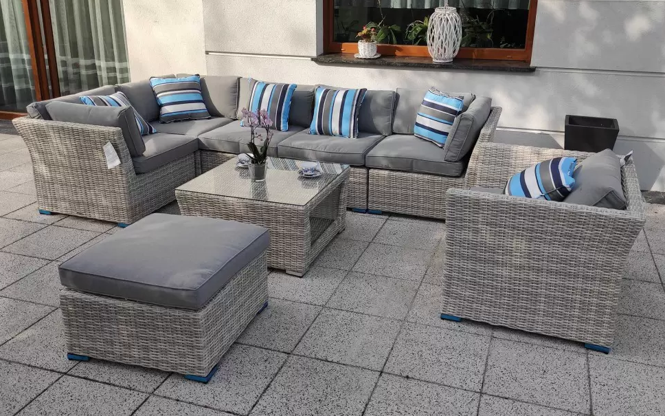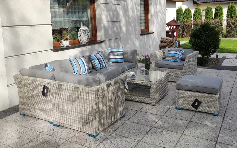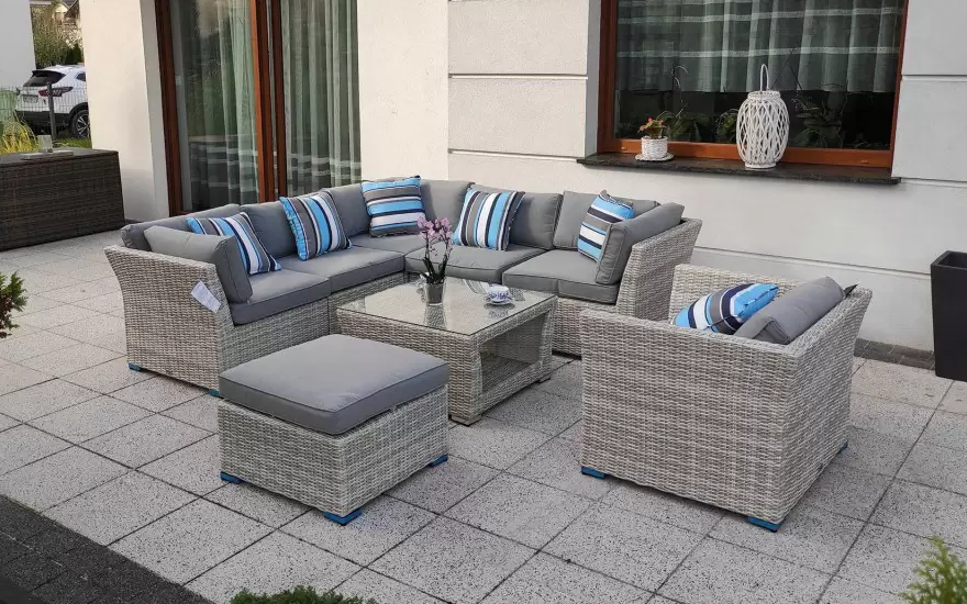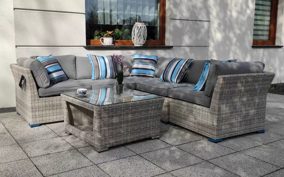 Zestaw mebli wypoczynkowych złożony z modułowego narożnika ze stolikiem. Opcjonalnie wersja z dodatkowym fotelem i podnóżkiem.