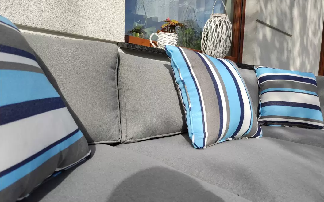 Poszewki poduszek z materiału poliestrowego impregnowanego z zamkami błyskawicznymi.