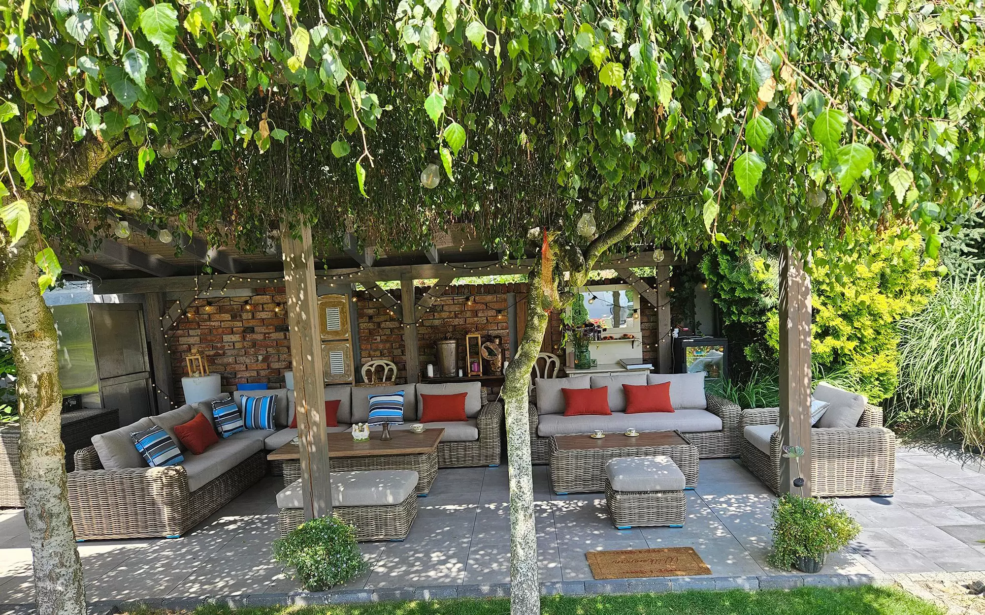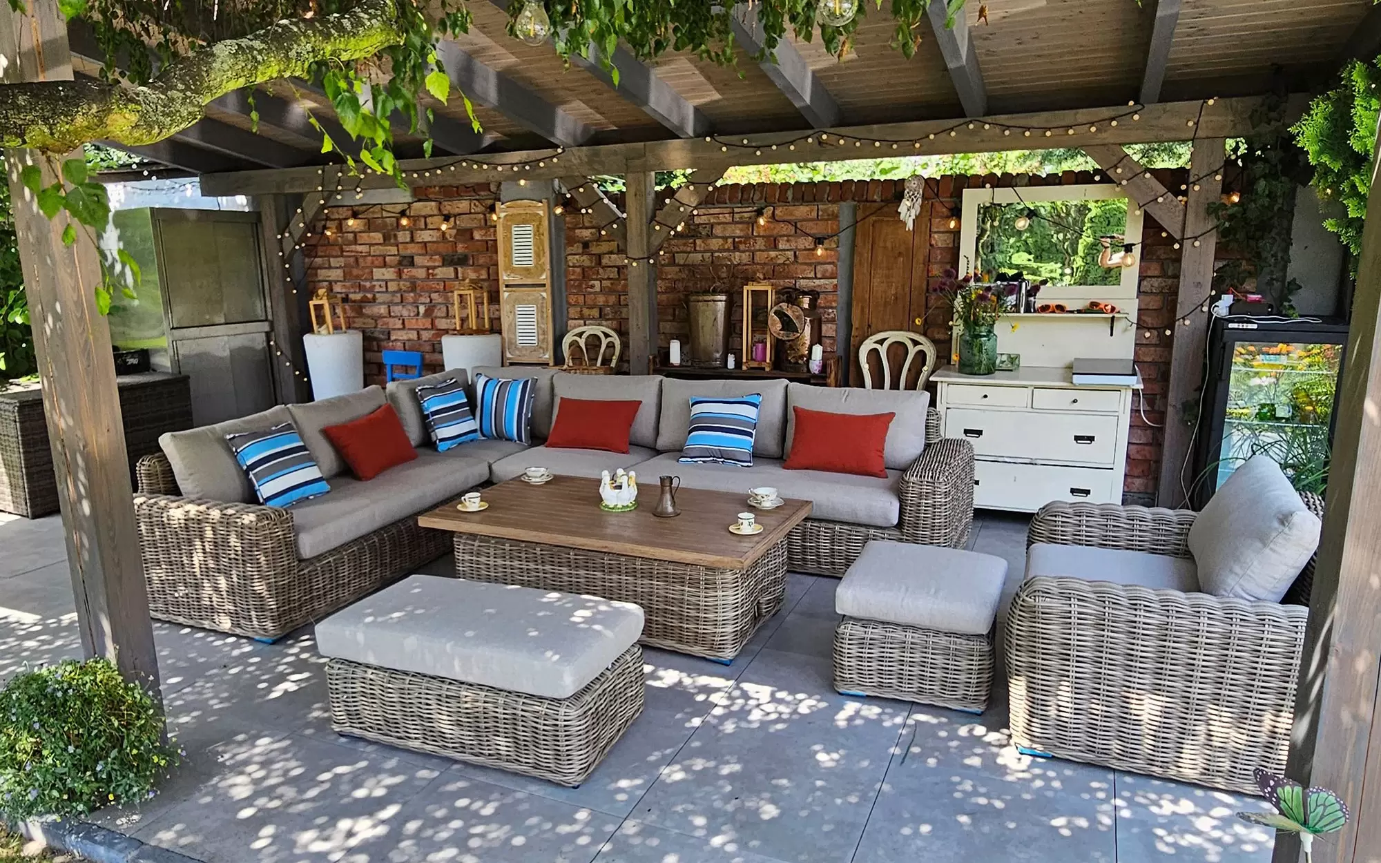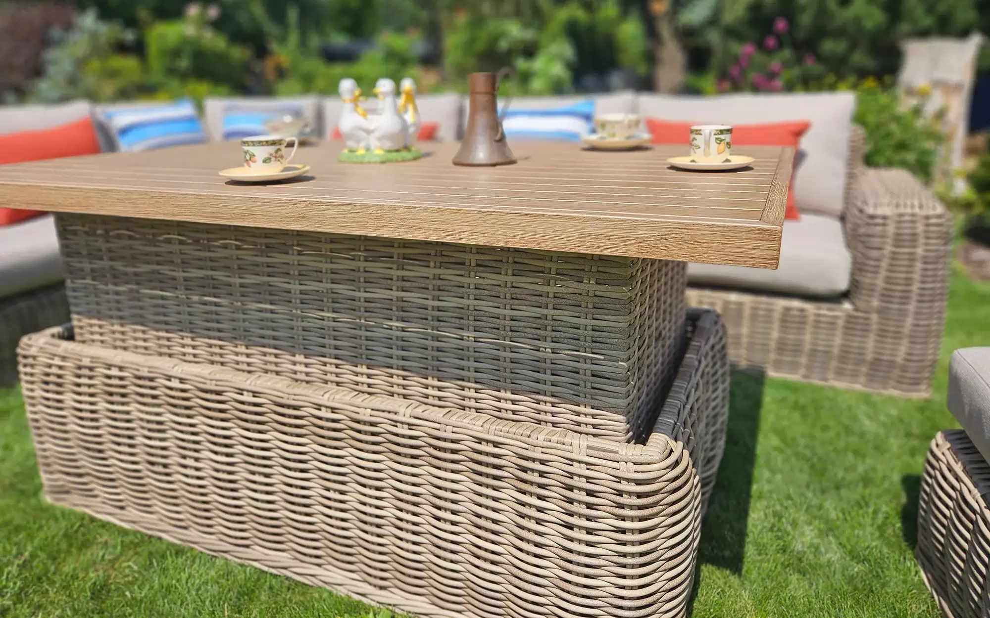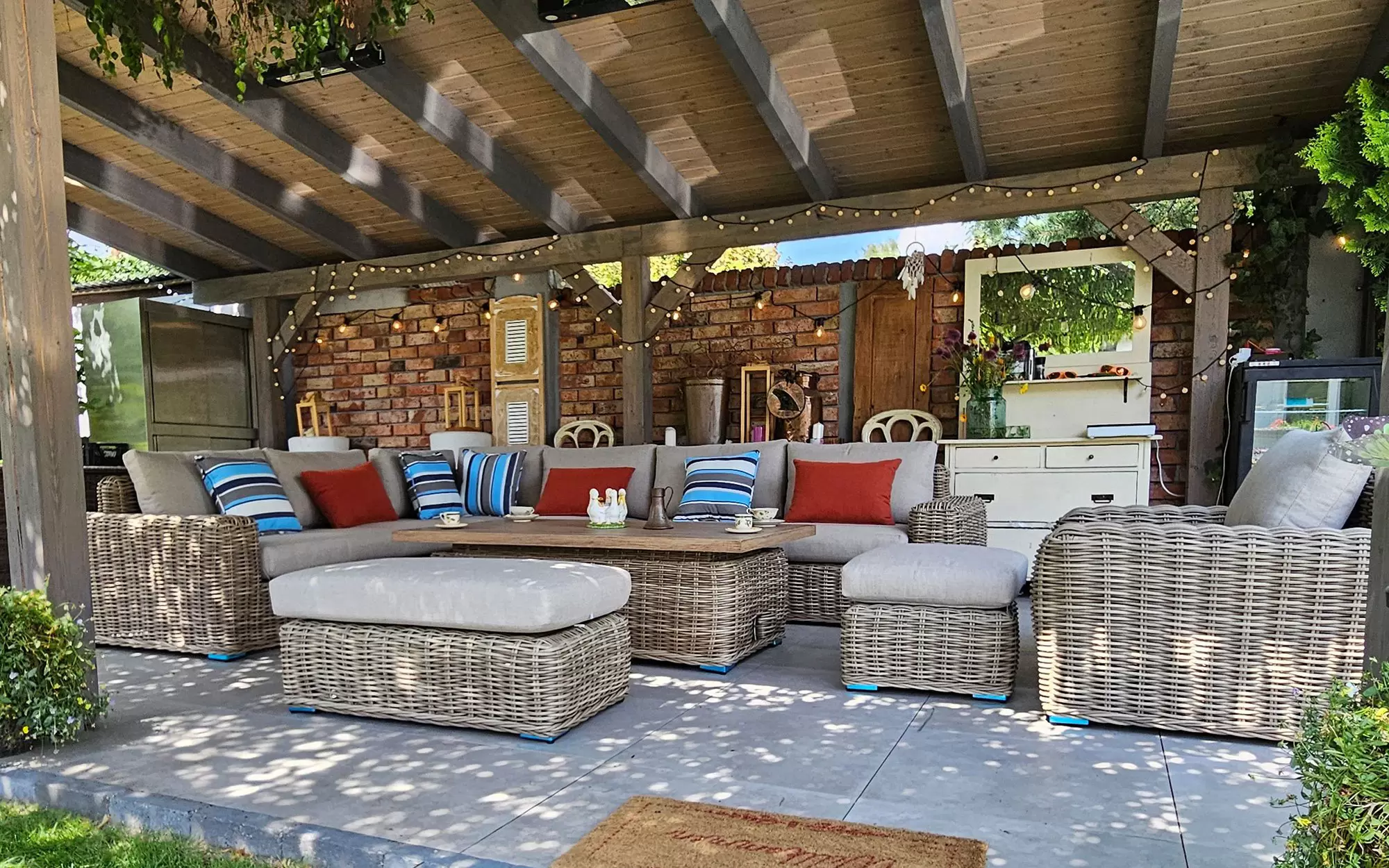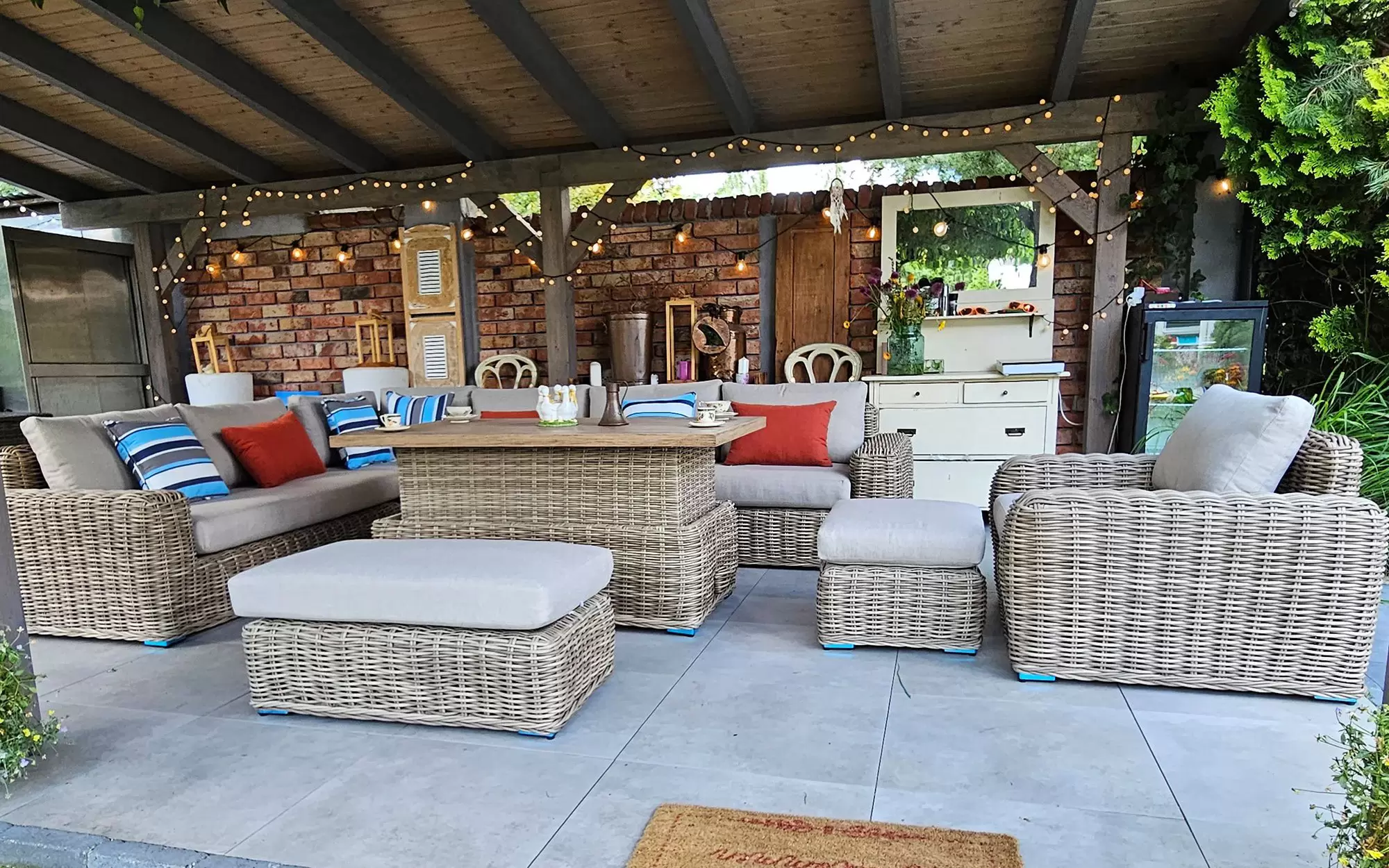 W komplecie znajdują się poduszki siedziskowe i oparciowe, zapewniające wysoki komfort użytkowania. Zestaw sprawdza się zarówno podczas codziennego wypoczynku, jak i większych spotkań rodzinnych.