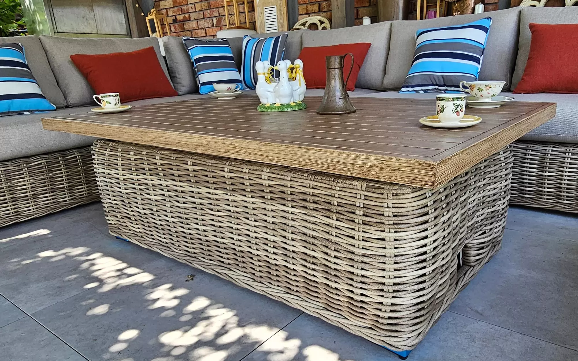 - Stolik regulowany z paleniskiem gazowym i blatem szklanym (dopłata 1200 zł)