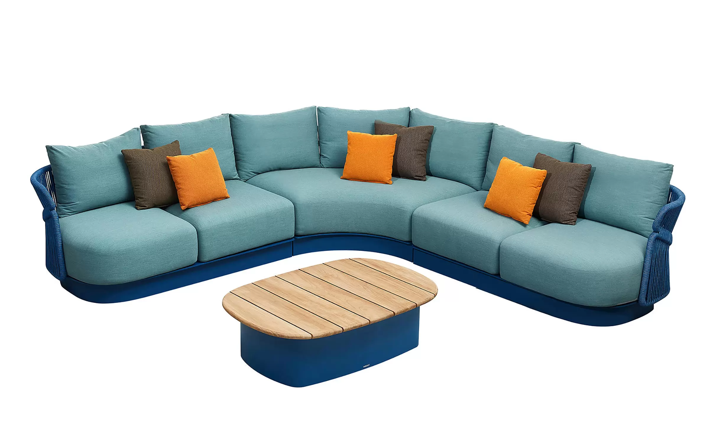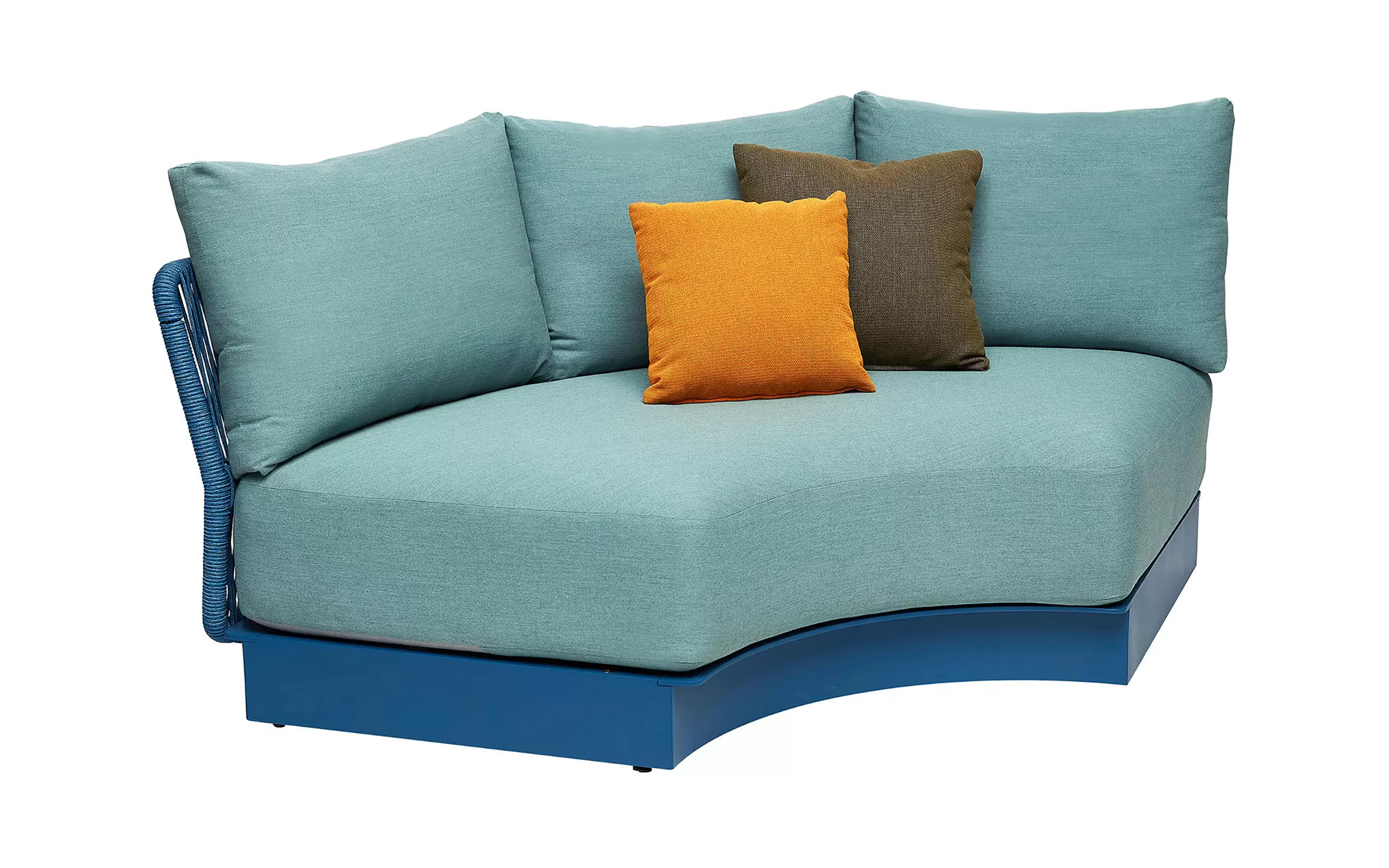 Meble w kolorze niebieskim: poduszki Olefin zapewniają wysoki komfort siedzenia i są przystosowane do użytku na zewnątrz. Tkanina jest wyjątkowo trwała, łatwa w czyszczeniu, szybko schnąca, odporna na warunki atmosferyczne i promieniowanie UV, a dzięki zamkowi błyskawicznemu poszewki można łatwo zdjąć. Dla dłuższego zachowania pięknego wyglądu warto chronić poduszki przed intensywnym, nierównomiernym nasłonecznieniem.