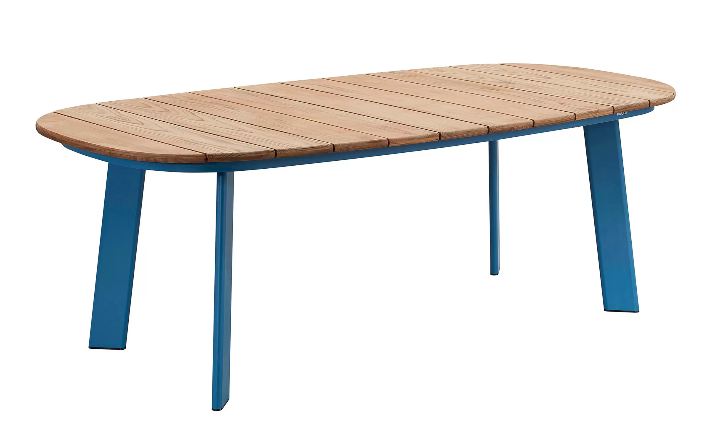 Konstrukcja aluminiowa malowana proszkowo. Blat wykonany z drewna tekowego. Poduszki Olefin są przystosowane do użytku na zewnątrz, odporne na UV i warunki atmosferyczne, łatwe w czyszczeniu i szybko schnące. Zamek błyskawiczny umożliwia łatwe zdejmowanie poszewek.