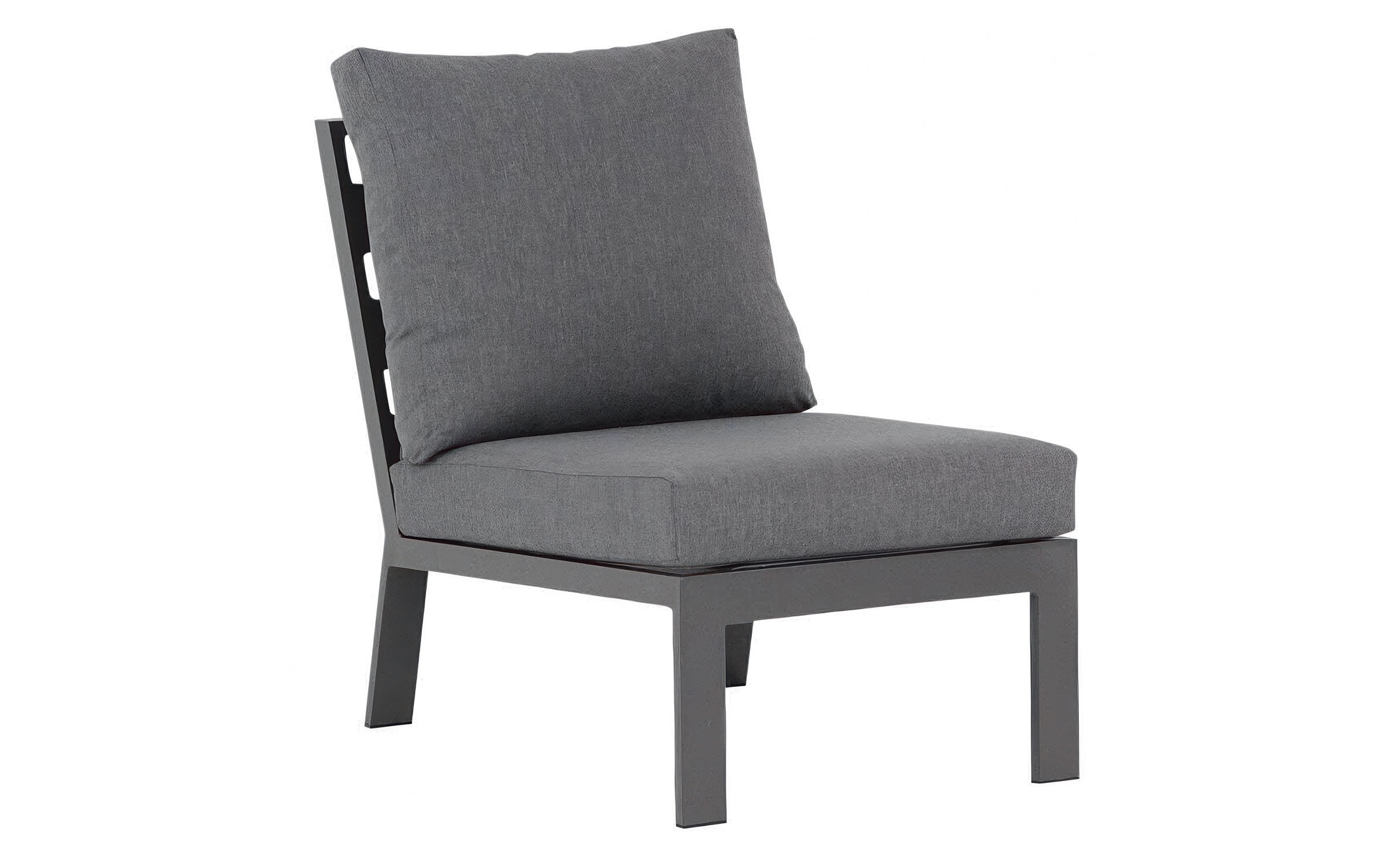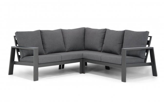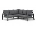 Aluminiowy zestaw narożny na taras w kolorze grafitowym z wygodnymi poduszkami.