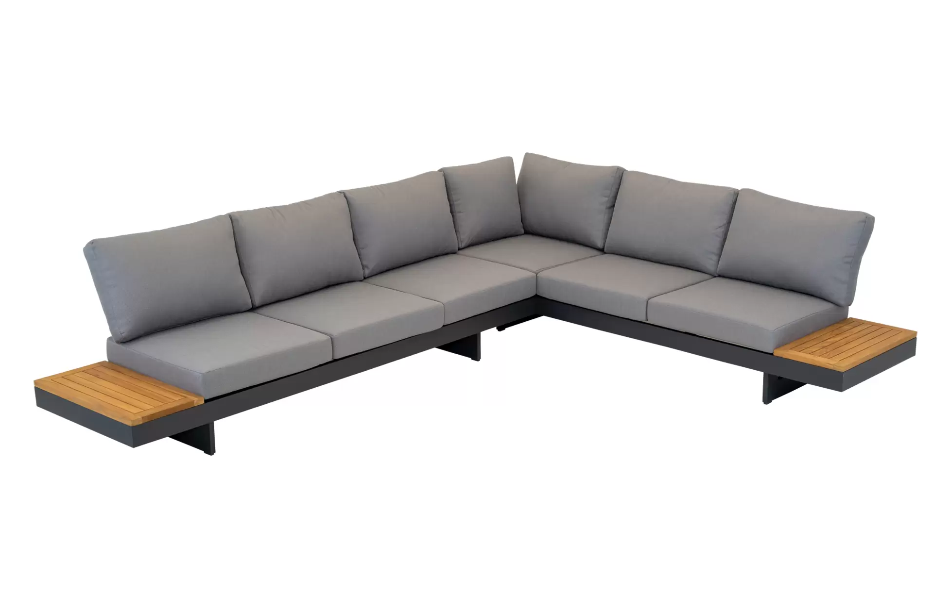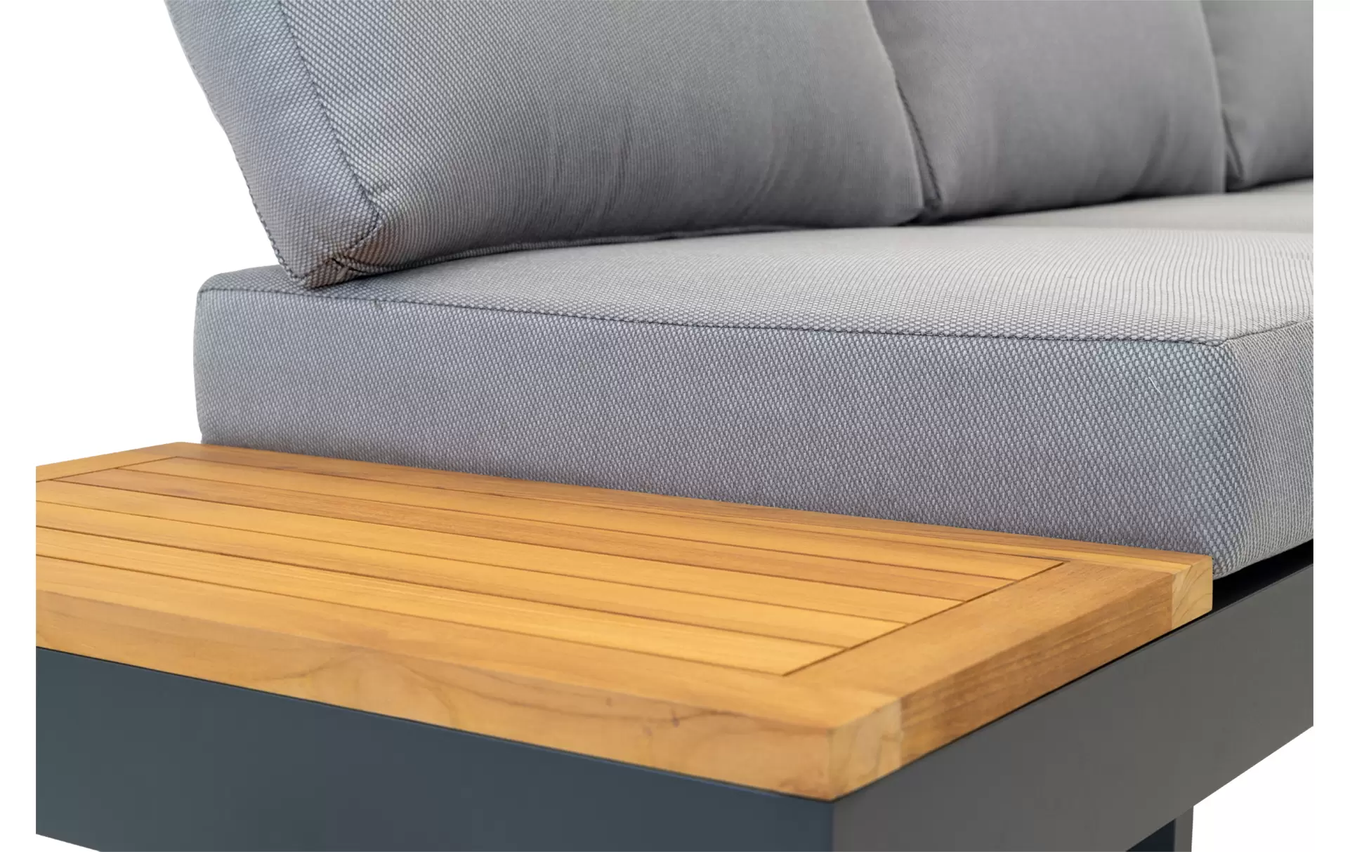Narożnik ogrodowy aluminiowy nowoczesny BARBADOS grafitowy / drewno teak