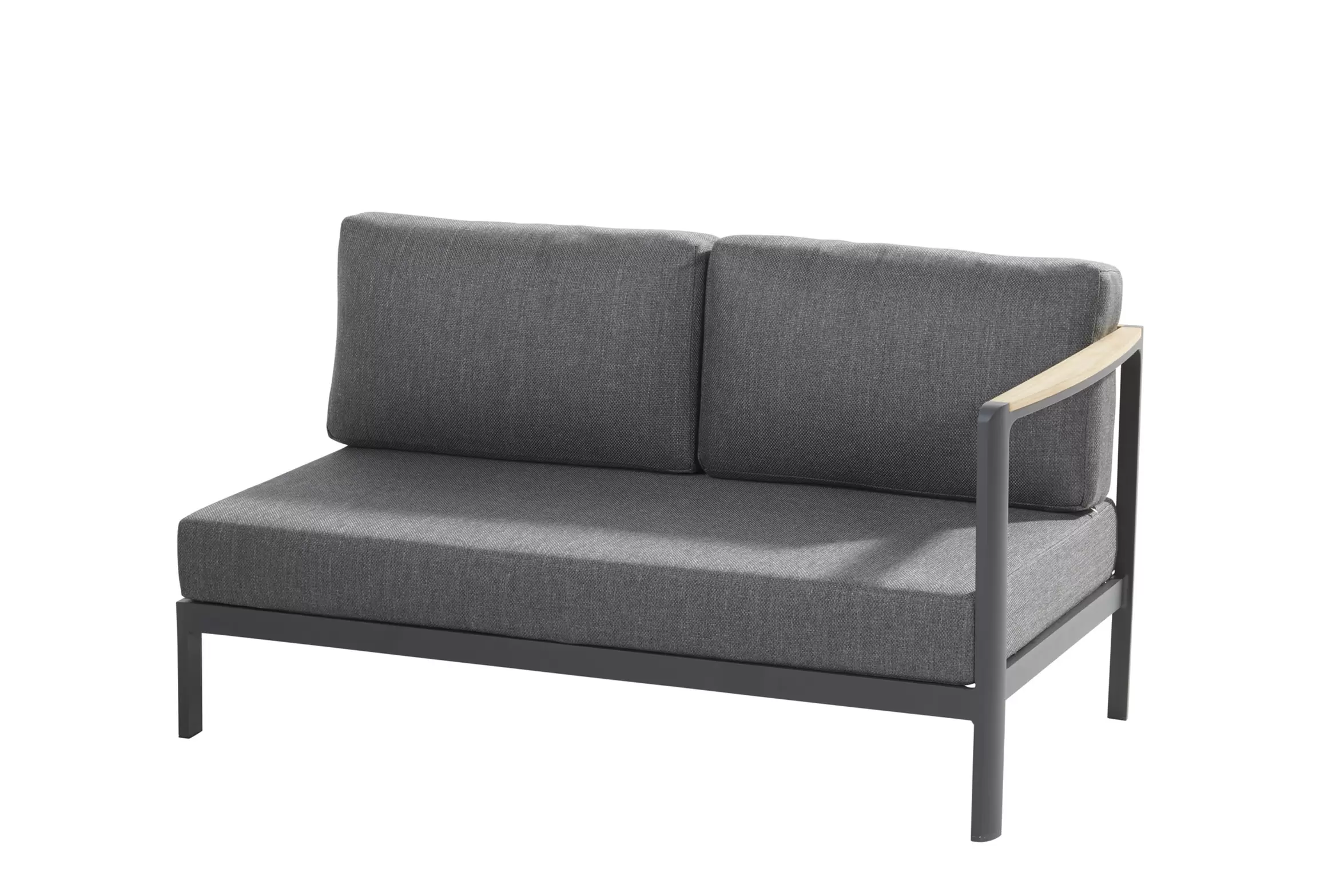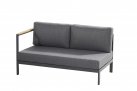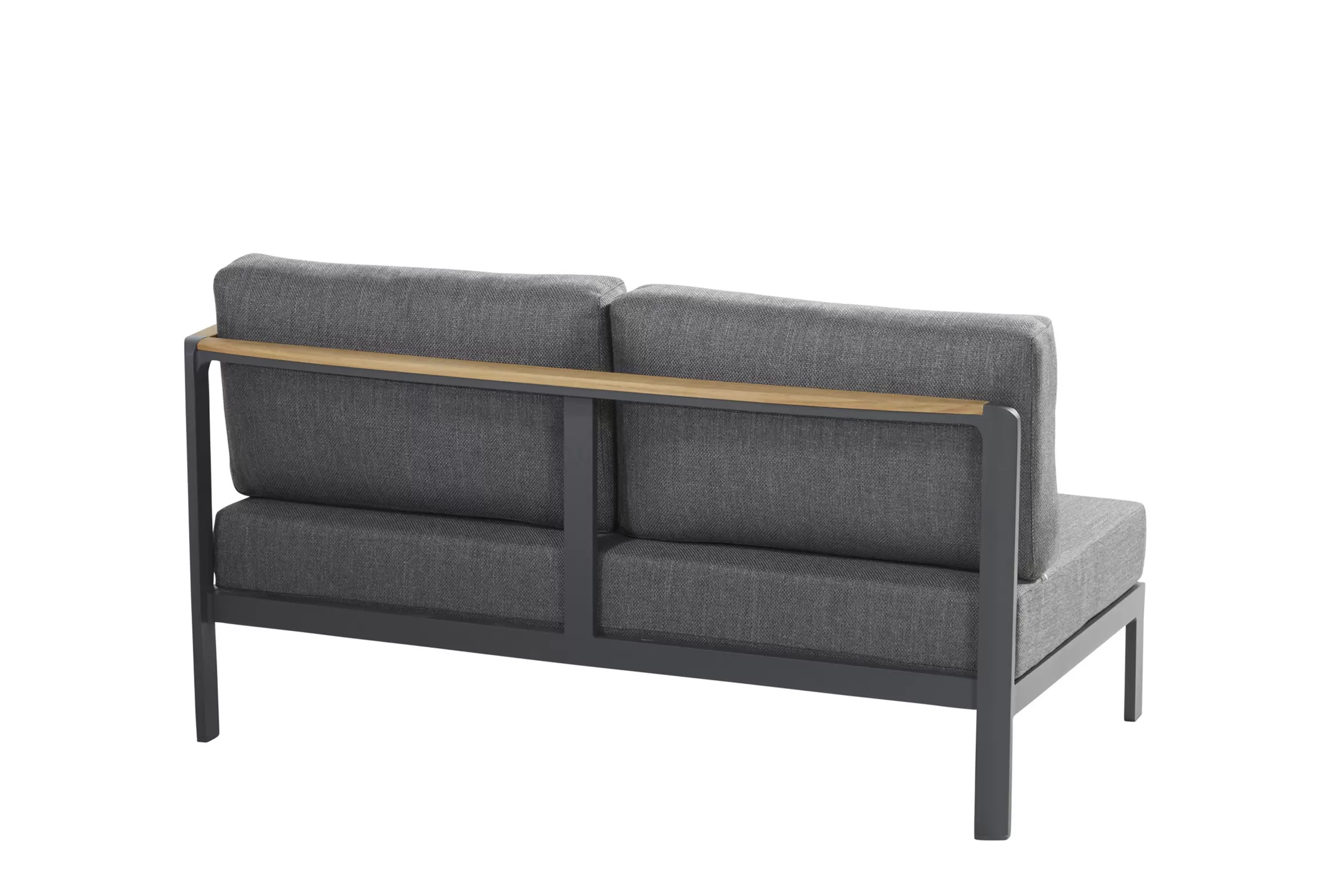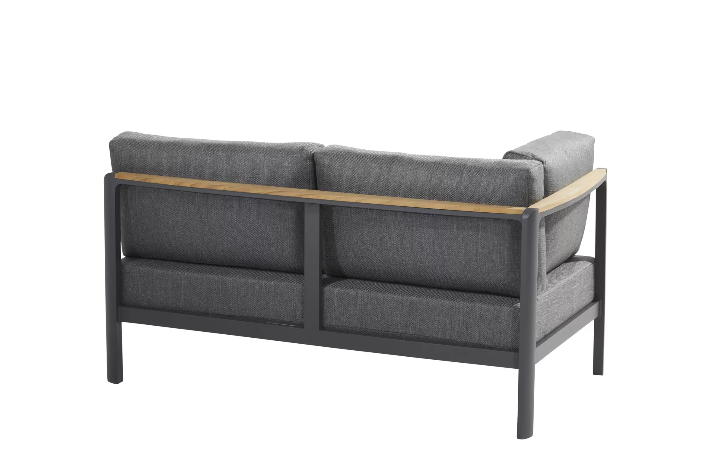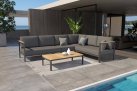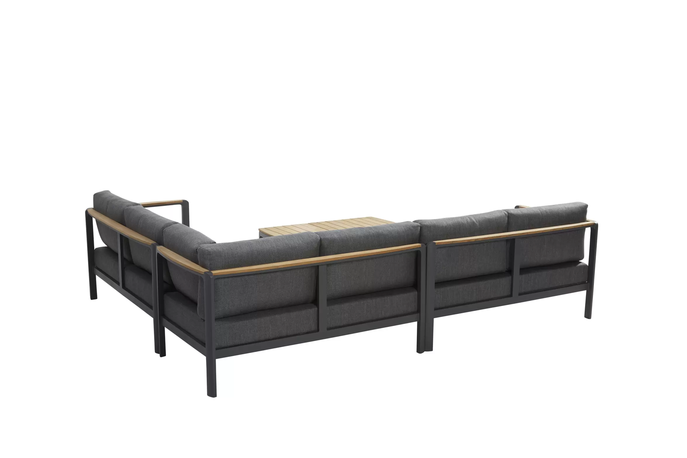 Zestaw wypoczynkowy Cortina od Taste 4SO to modułowa sofa narożna, która wyróżnia się subtelnymi akcentami teaku i eleganckimi krzywiznami. Cortina jest wykonana z malowanego proszkowo aluminium, dzięki czemu jest odporna na warunki atmosferyczne i nie wymaga konserwacji. Narożnik Cortina jest wykończony ekologicznym drewnem tekowym na podłokietnikach, nadając dzięki zestawowi Cortina luksusowy wygląd Twojemu tarasowi.