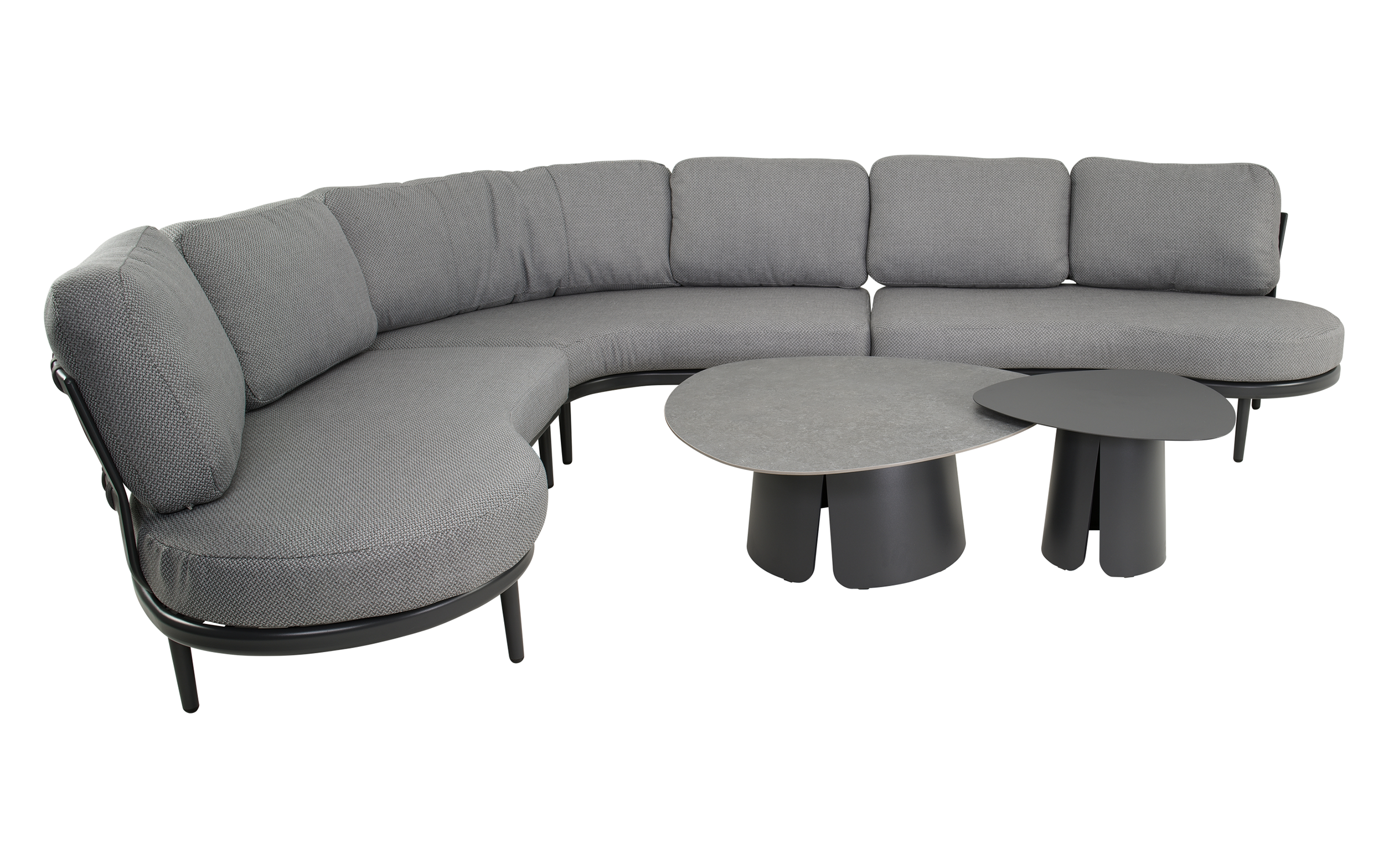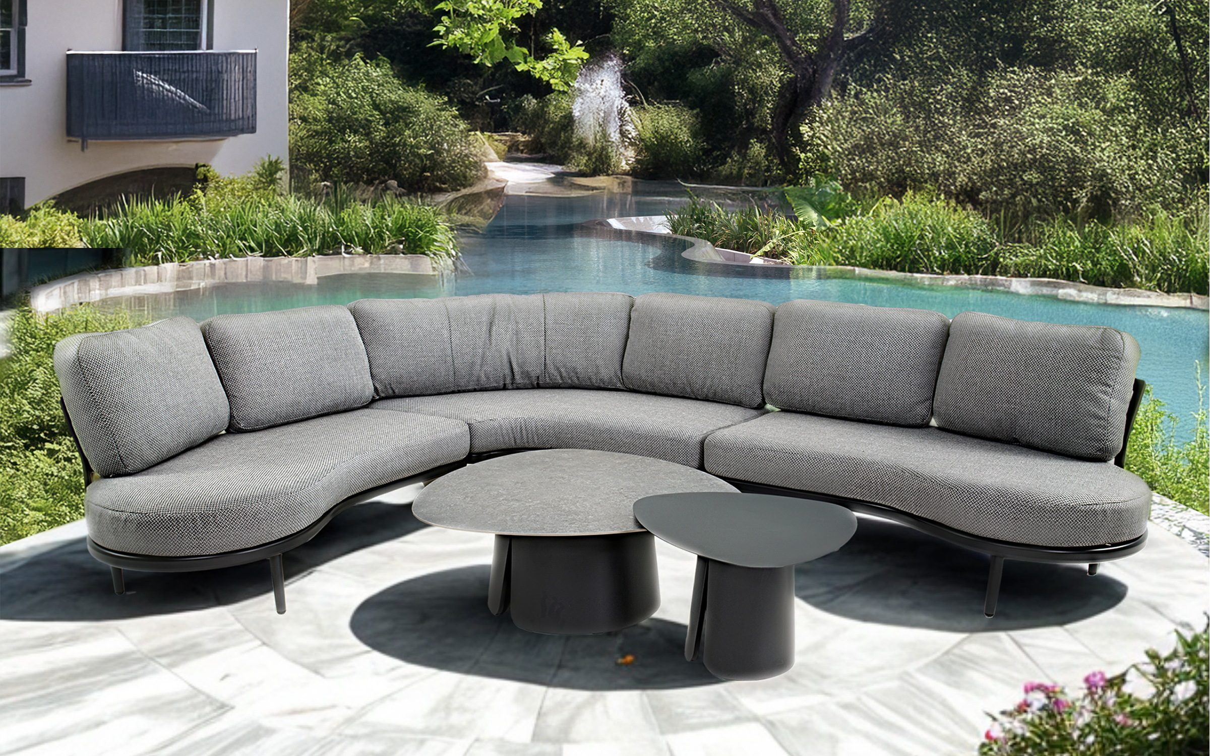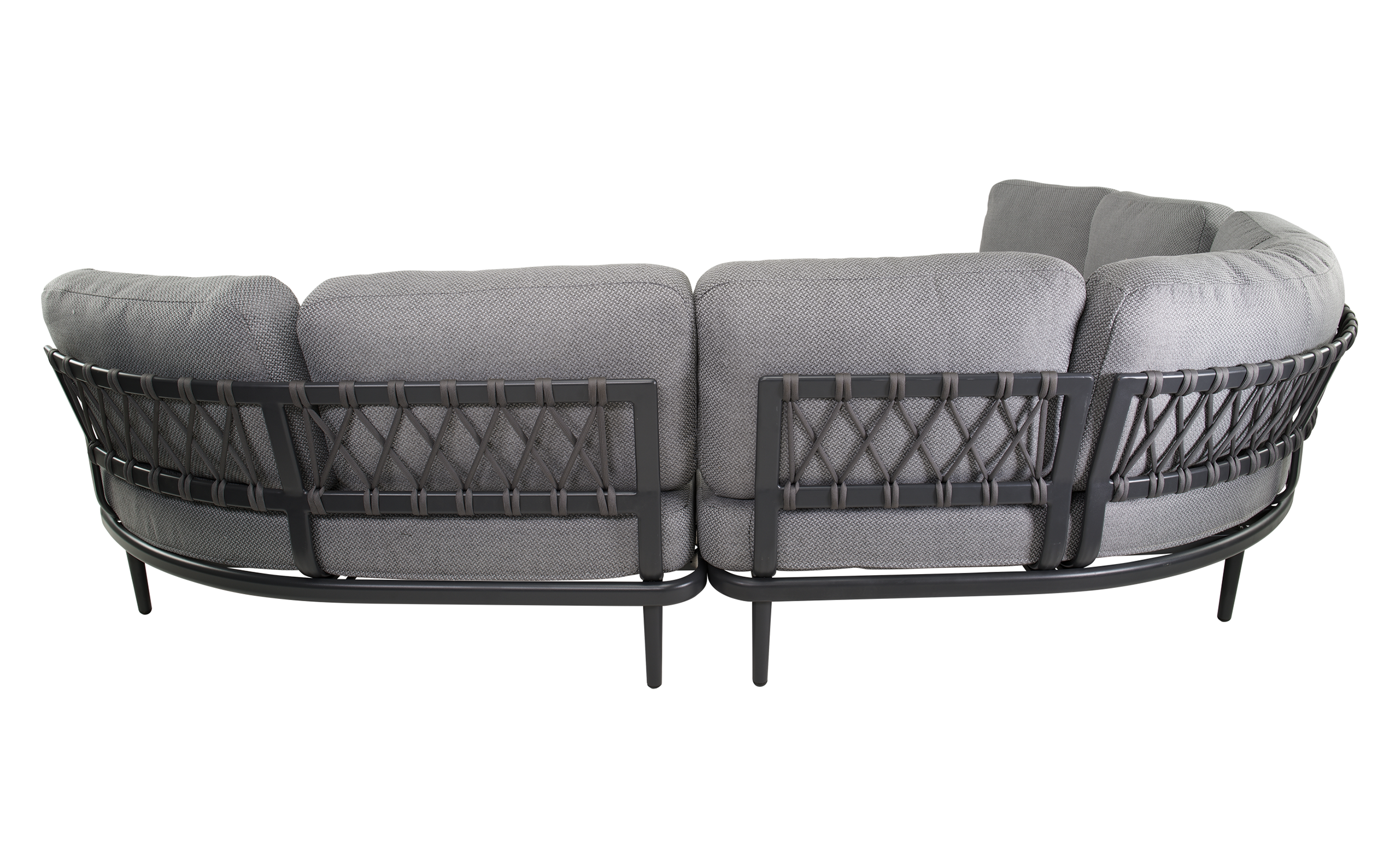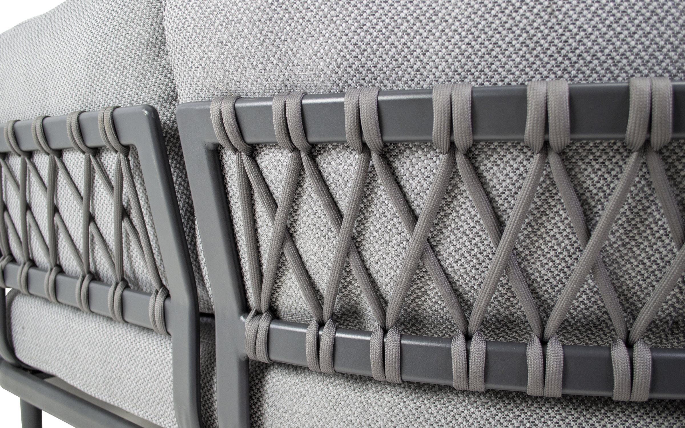 Zestaw wypoczynkowy DURBAN marki Lesli Living łączy nowoczesny komfort outdoorowy z eleganckim doborem materiałów i ponadczasową formą. Składa się z trzech harmonijnie dopasowanych elementów: dwóch sof 2‑osobowych oraz narożnika. Całość można uzupełnić o stoliki kawowe w dwóch rozmiarach, które idealnie komponują się z zestawem. Konstrukcja aluminiowa w kolorze matowego antracytu, ciemnoszare linowe wyploty oraz poduszki Olefin w szarym odcieniu tworzą spójną i elegancką aranżację.