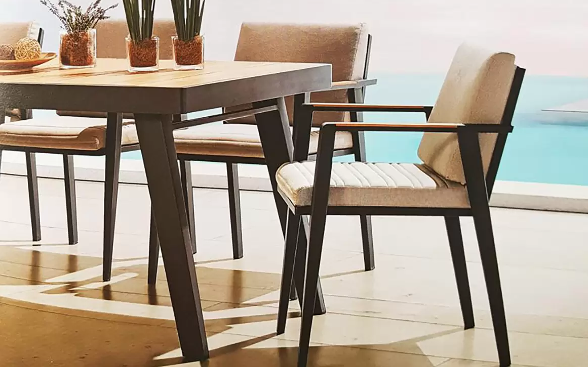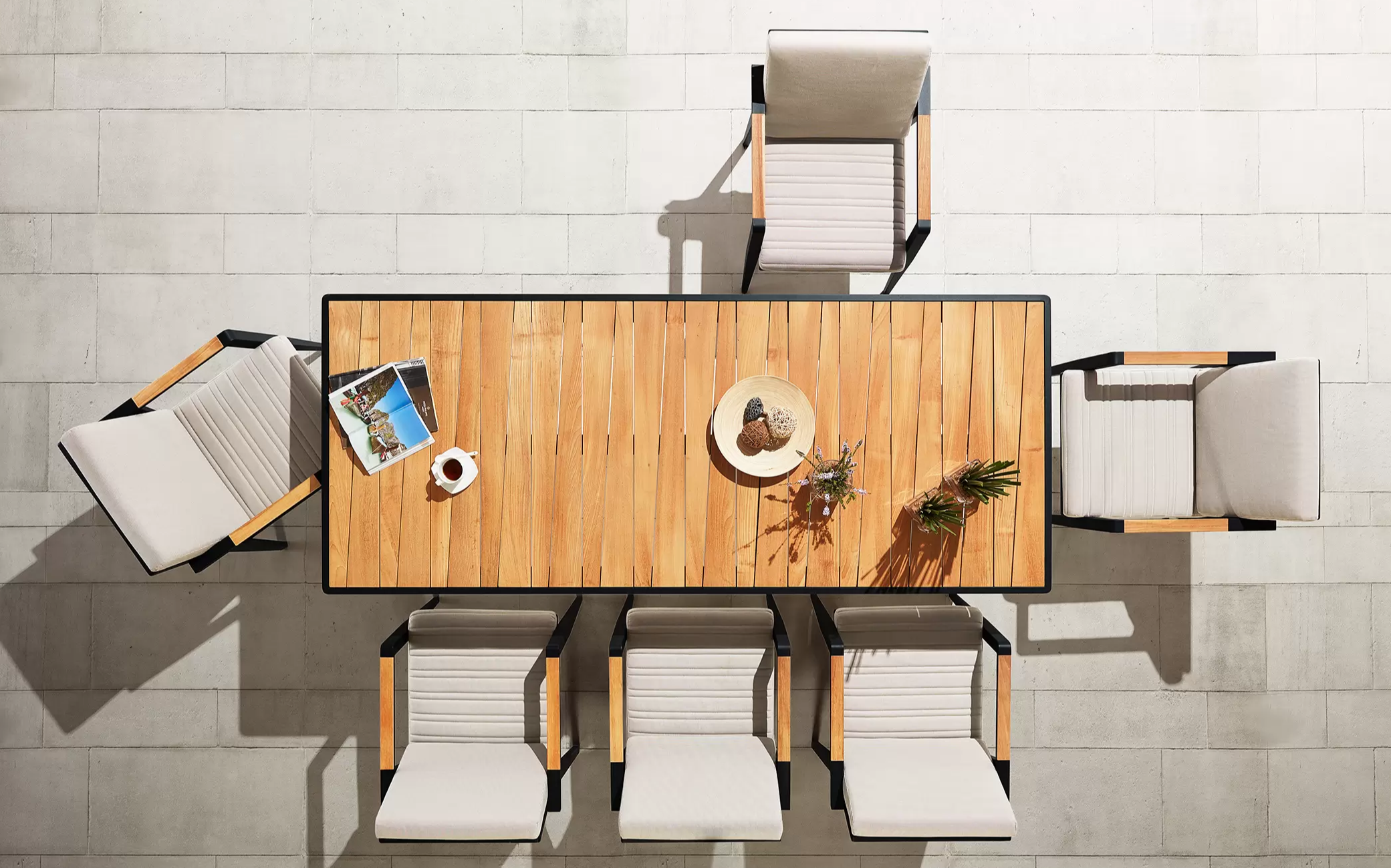 Zestaw stołowy dla 8 osób aluminiowy z blatem teak EMOTI Dining BIG