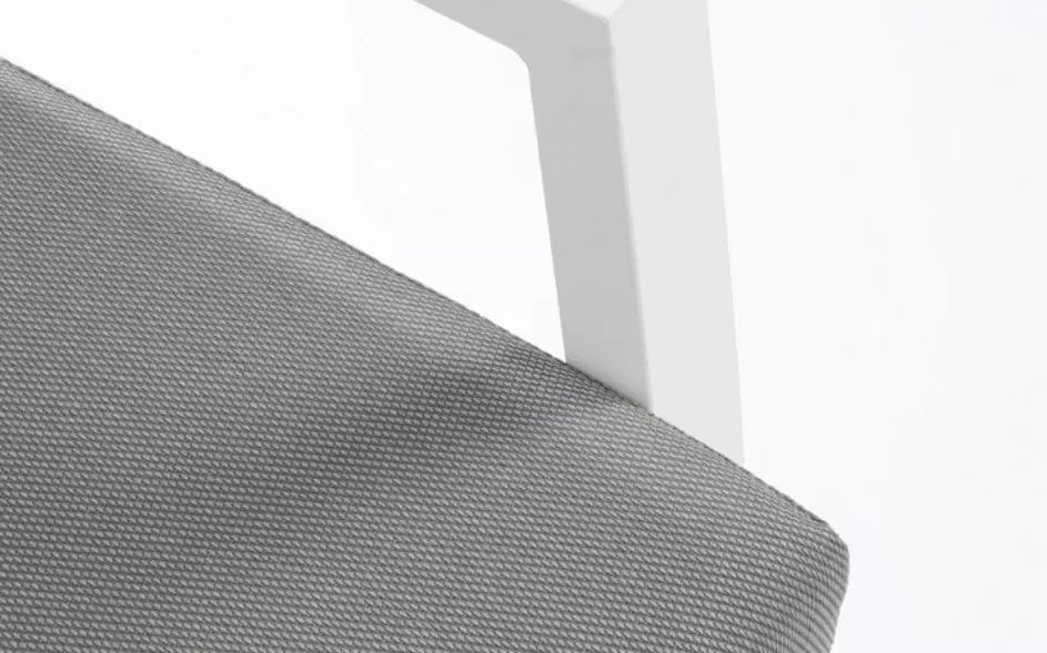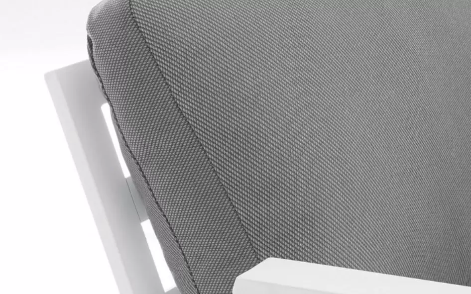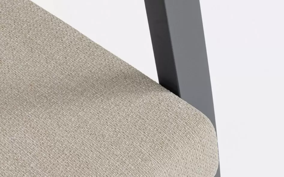 Tkanina Olefin (100% PP) – wysokiej klasy materiał syntetyczny o właściwościach hydrofobowych, który nie wchłania rozlanych płynów i błyskawicznie schnie. Włókna są trwale barwione w masie, co zapobiega ich płowieniu pod wpływem słońca, a praktyczne, zdejmowane pokrowce umożliwiają szybkie i łatwe odświeżenie tapicerki.